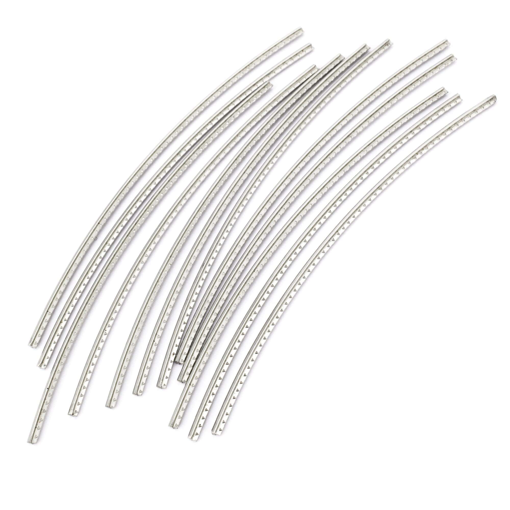 4. Empaquetados ligeramente curvados. Cada traste mide 13cm(5.118 pulgadas) de largo, 12 piezas/set, un total de 156cm(5.1 Pies) de longitud, suficiente para cualquier guitarra estándar.