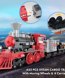 Este set de tren de carga de la ciudad BRICK STORY es perfecto para niños de 8 a 14 años que disfrutan construyendo y creando historias de trenes. Incluye una locomotora de vapor clásica con 3 vagones de carga para llevar carbón, combustible y madera a través de la ciudad. Los vagones tienen puertas abatibles y ruedas en movimiento para un juego más realista. Además, viene con 2 mini maquinistas, piezas de herramientas y 3 piezas de madera construibles para cargar y descargar los vagones.
