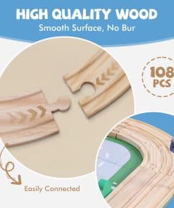 Material de Madera Premium: El set de tren de madera utiliza material de madera premium, que es resistente y duradero. La superficie suave evita daños a los niños y simplifica su limpieza.