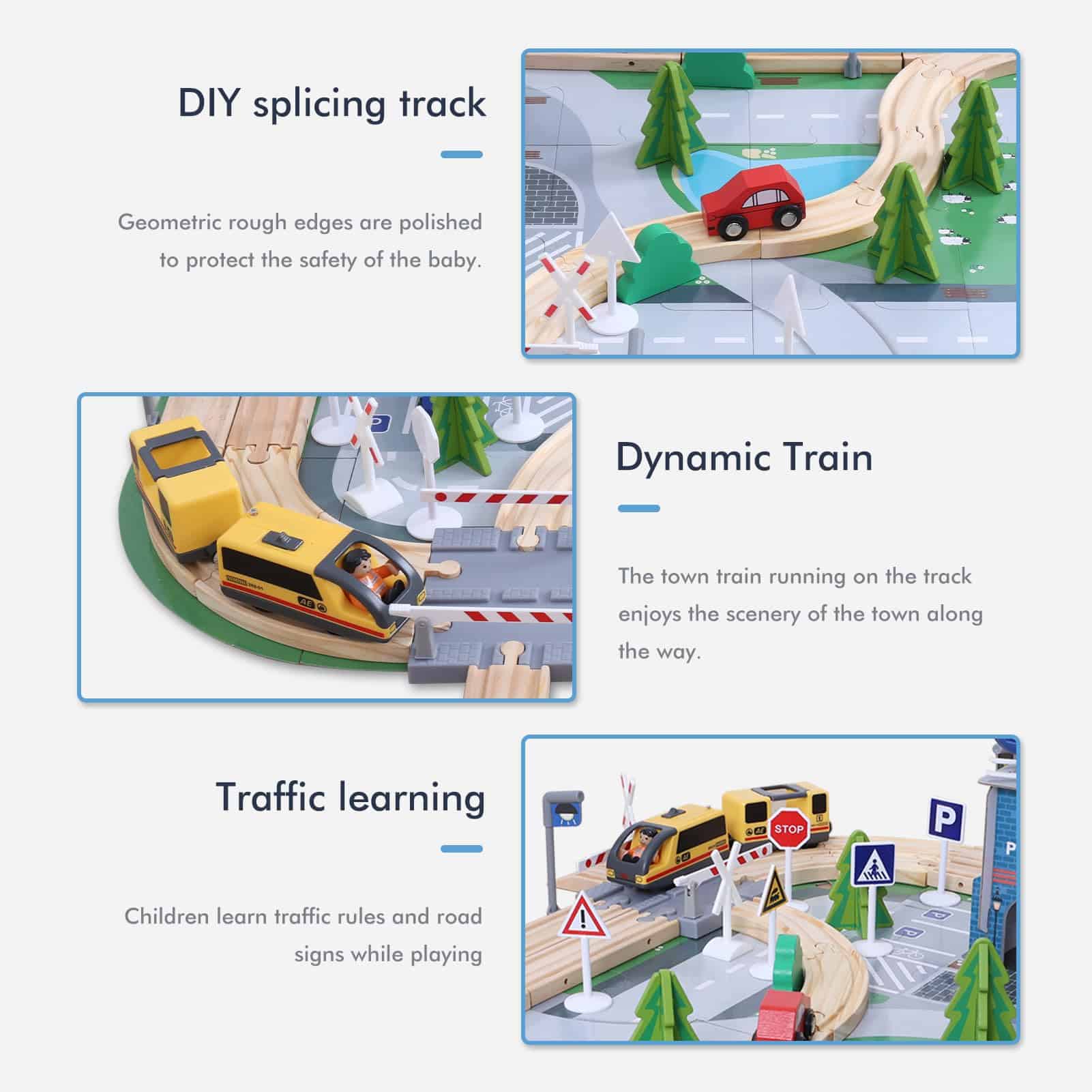 Valor Educativo: Este set de tren de juguete de madera es un juguete educativo para cultivar la imaginación espacial y la habilidad práctica, mejorar las habilidades cognitivas de su hijo y fortalecer la coordinación mano-ojo y la capacidad de pensamiento.