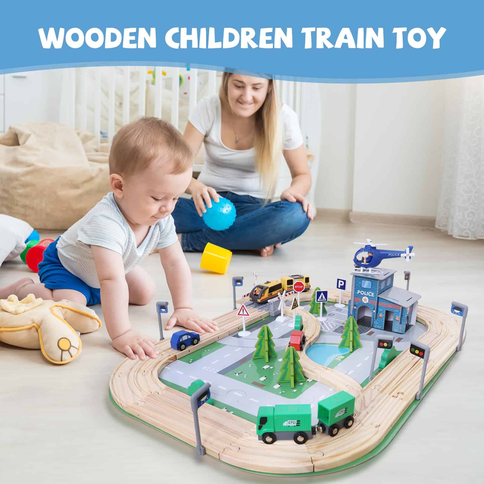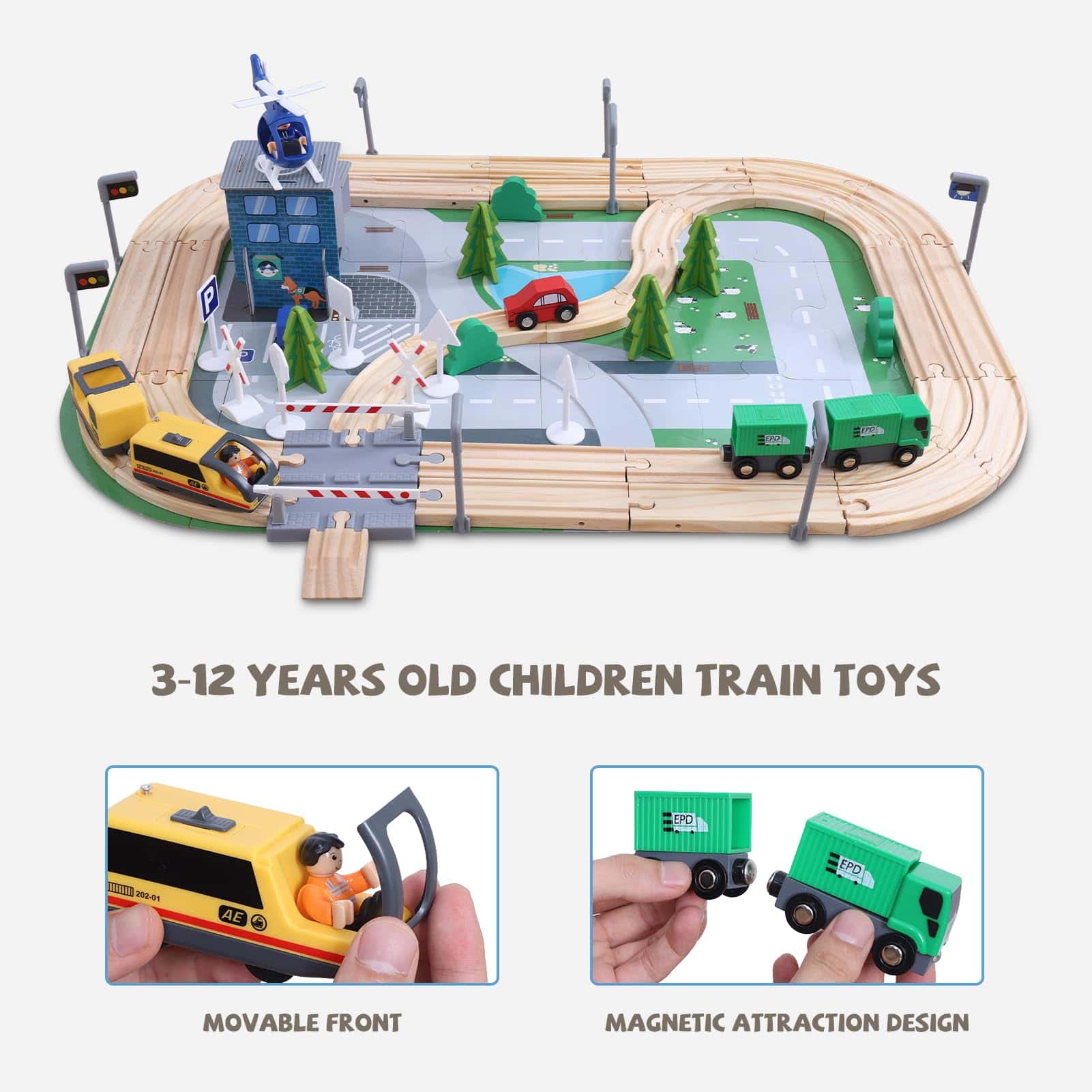 Set de Tren de Madera de 101 Piezas, Juguetes de Tren para