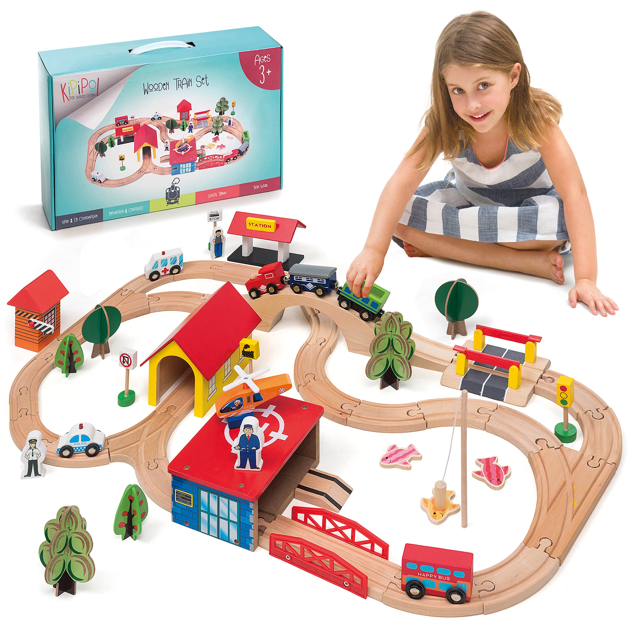 Set de Tren de Madera KipiPol – 69 Piezas de Vías y Trenes