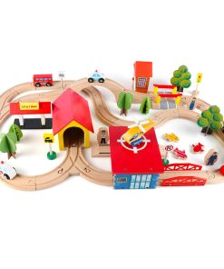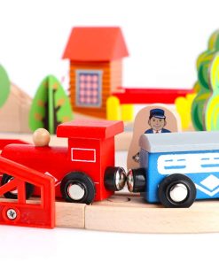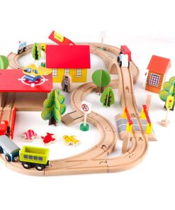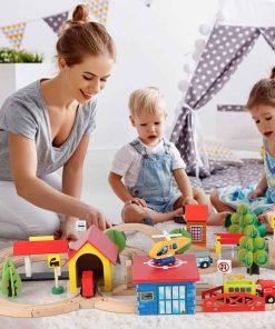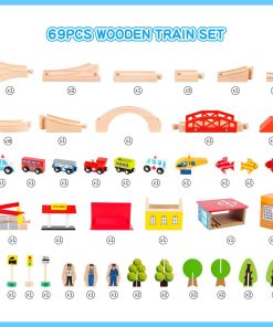 Set de tren de madera Qilay de 69 piezas – Juguetes de tren