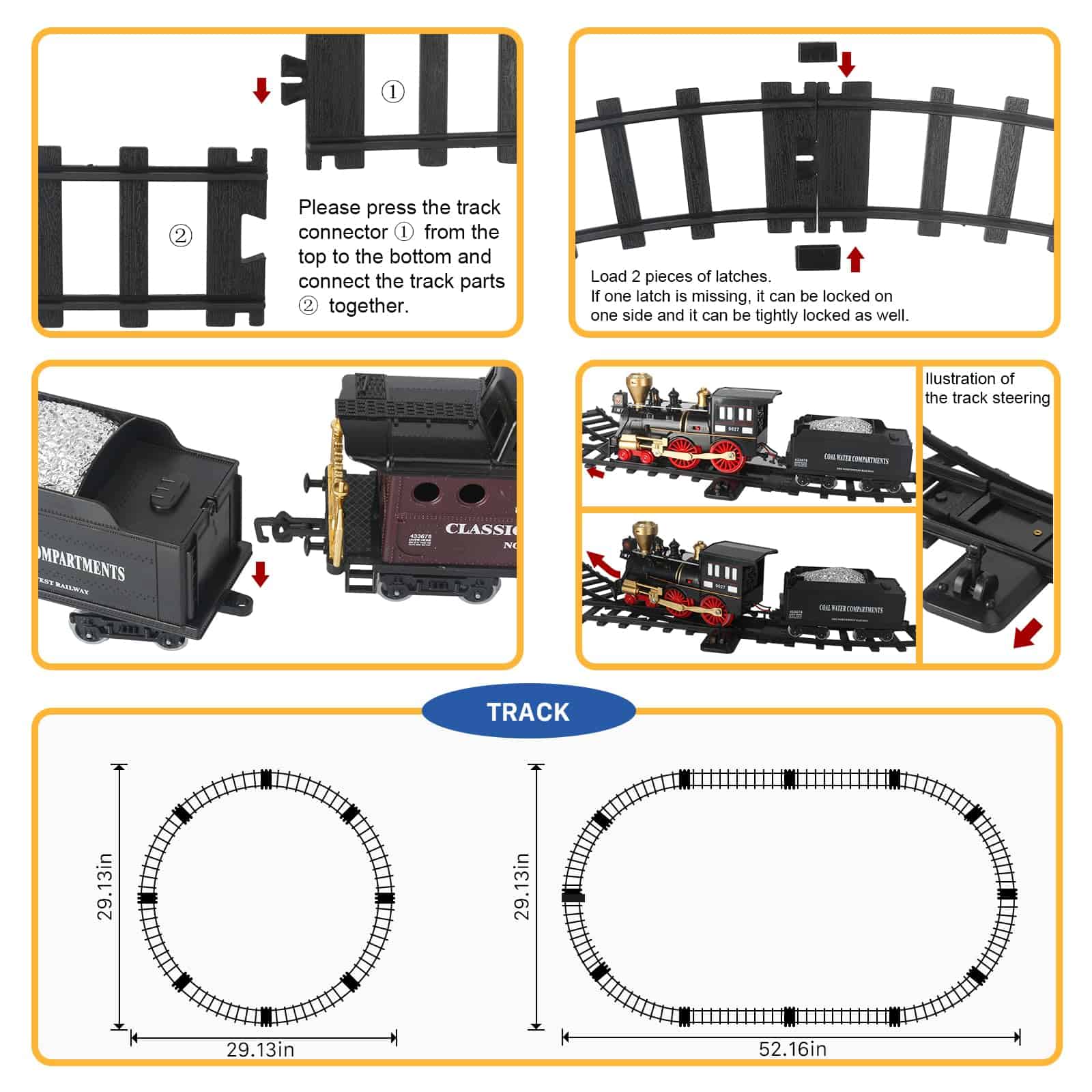 El juguete de tren es un juego de tren divertido y educativo para las vacaciones, cumpleaños y los niños para comenzar los divertidos juegos de tren. Tus hijos y tu familia disfrutarán viendo moverse el tren de juguete. No solo puedes mantener a tus hijos divirtiéndose durante horas, sino también mejorar su inteligencia y ejercitar la coordinación mano-ojo.