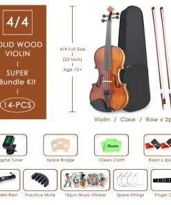Este violín es ideal para cualquier adulto o estudiante que desee aprender a tocar música. Viene ensamblado con cuerdas y puente instalados y reforzados. Sin embargo, debido al transporte, puede ser necesario afinar el violín cuando lo reciba. El violín está fabricado con madera cuidadosamente seleccionada de abeto, secada profesionalmente para un sonido más delicado y estable. Espalda y laterales de arce bien elegidos, alta dureza y resistencia, propicios para la vibración de todo el cuerpo. Diapasón de ébano, clavijas, cordal de fibra de carbono con 4 afinadores finos integrados. Equipado con cuerdas de aluminio-magnesio, la calidad del sonido es suave y rico en timbre. El diseño antiguo inspira entusiasmo en los principiantes. Viene con todo lo necesario para principiantes, incluido un violín, 2 arcos, juego extra de cuerdas, puente de respaldo, 2 colofonias, reposapiés ajustable, afinador, paño de limpieza, silenciador de prácticas, guía de dedos, 10 pegatinas musicales divertidas y un estuche rígido ligero con bolsillos, mochila y correas para el hombro.