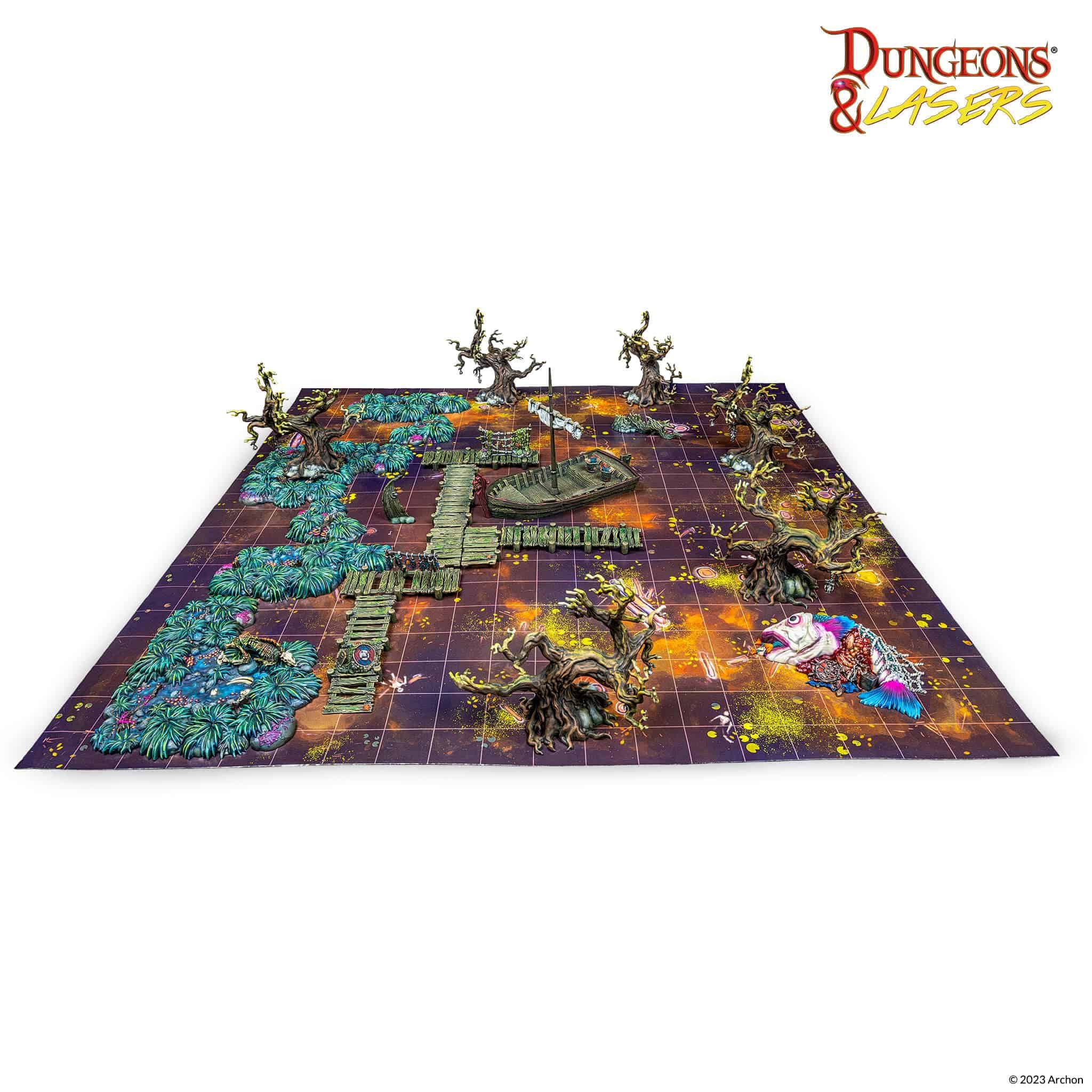 El Set Inicial Dungeons & Lasers: Pantanos de la Perdición incluye 29 diversos elementos en miniatura y accesorios para construir el terreno de tu campaña. Este set de miniaturas es compatible con todos los sistemas de RPG. Pruébalo en juegos como Dungeons and Dragons, Heroquest, Pathfinder y más. El plástico duradero garantiza que este terreno de RPG esté hecho para durar incluso las campañas más duras. Incluye un tapete de papel de doble cara con y sin cuadrícula para un mapa de juego fácil de añadir. Este producto requiere montaje y pintura manual.