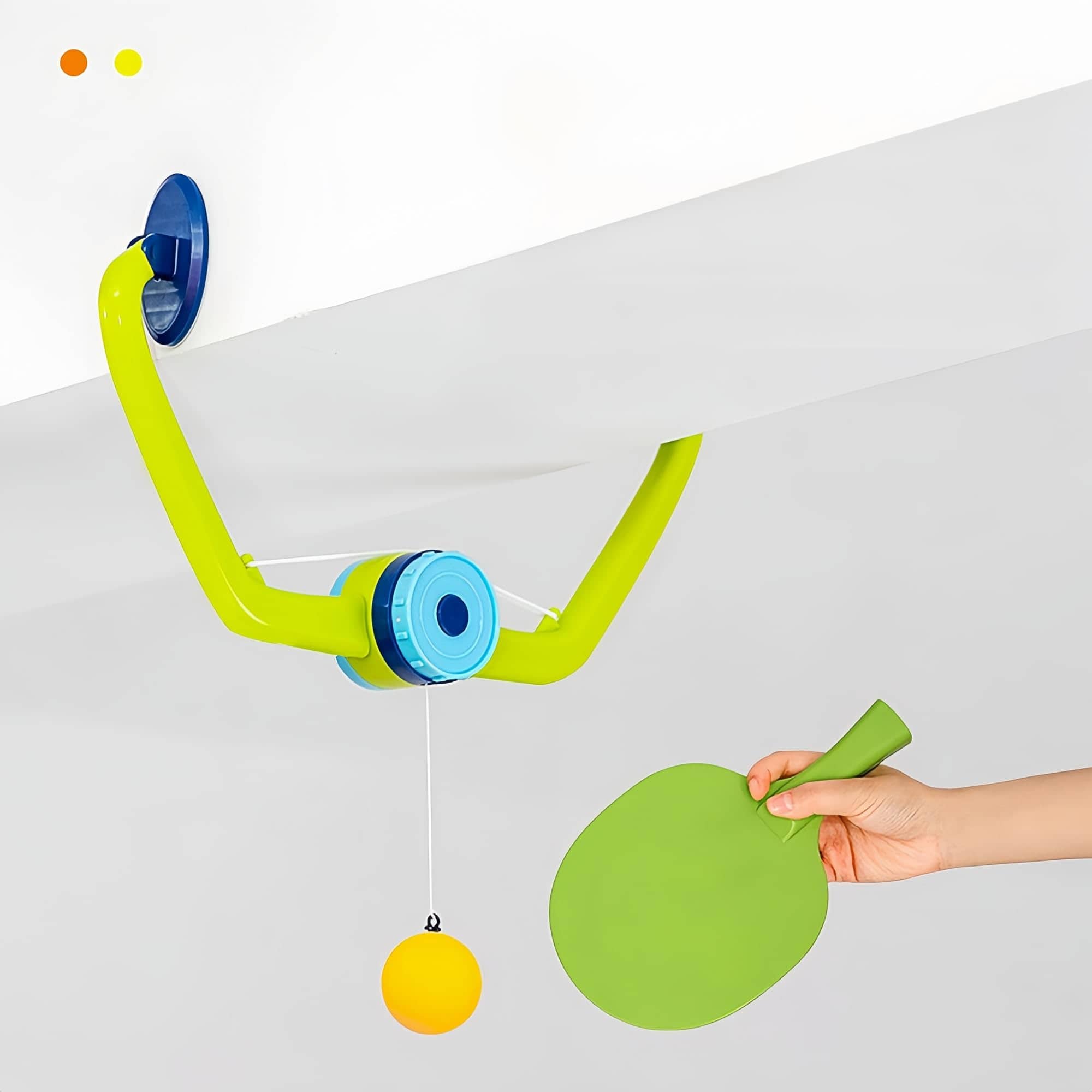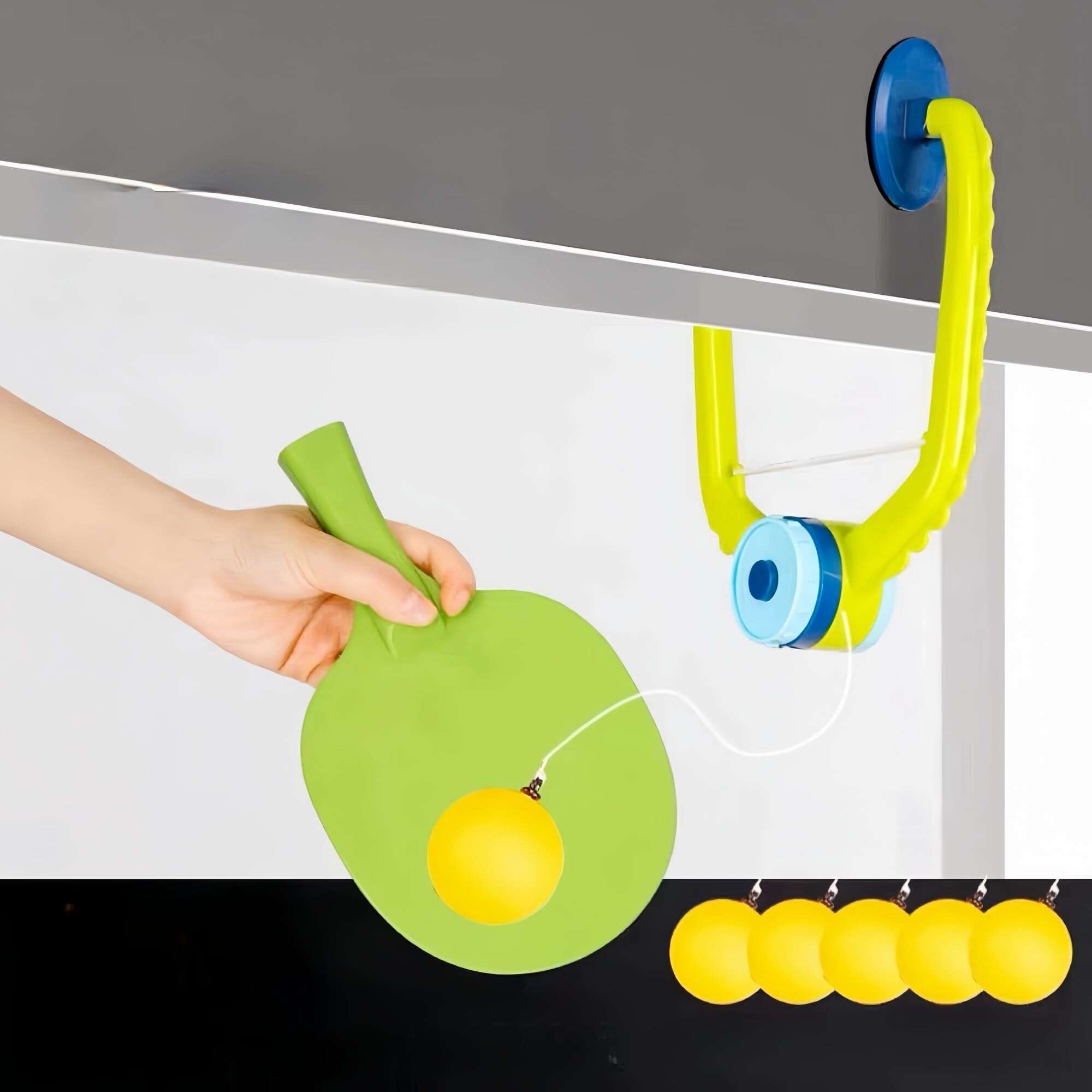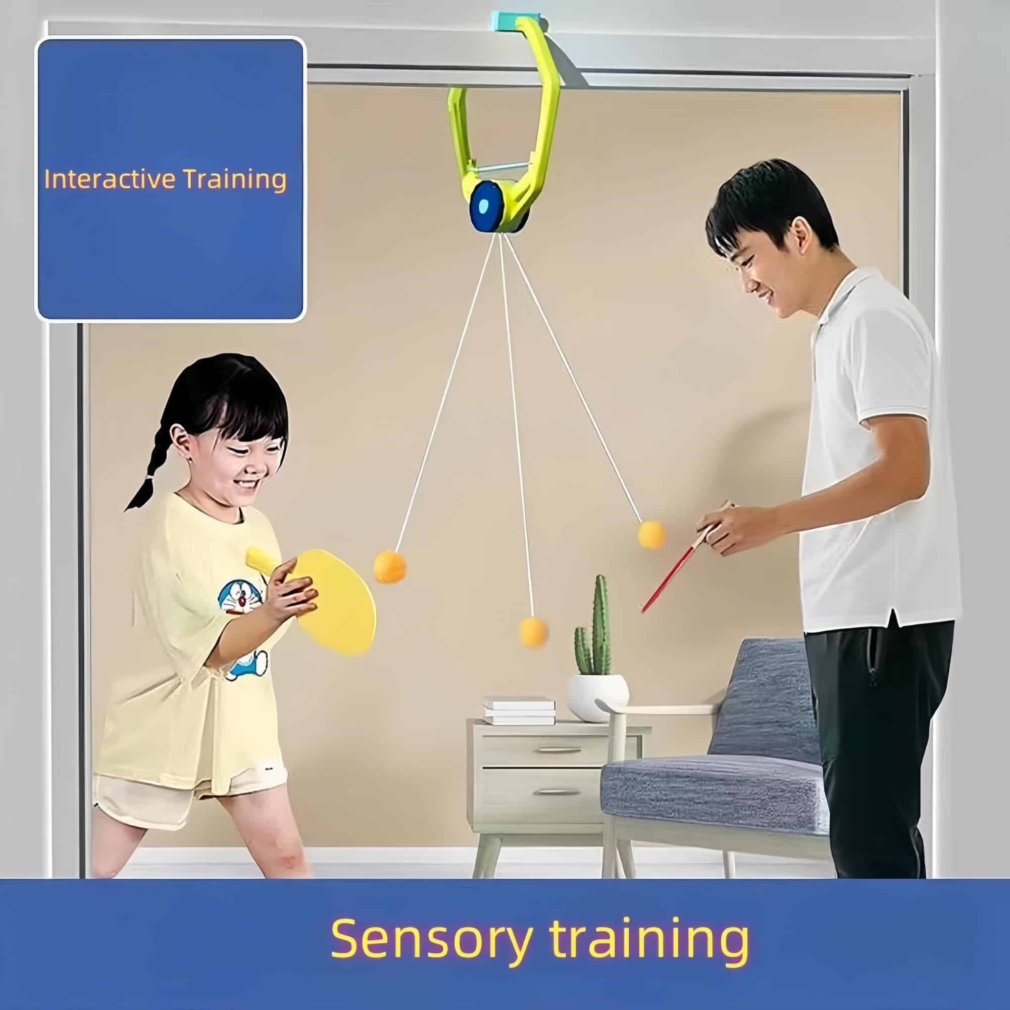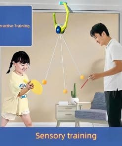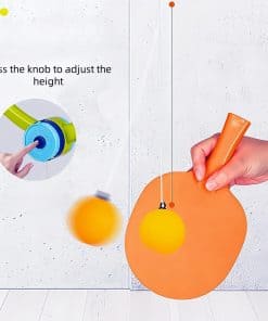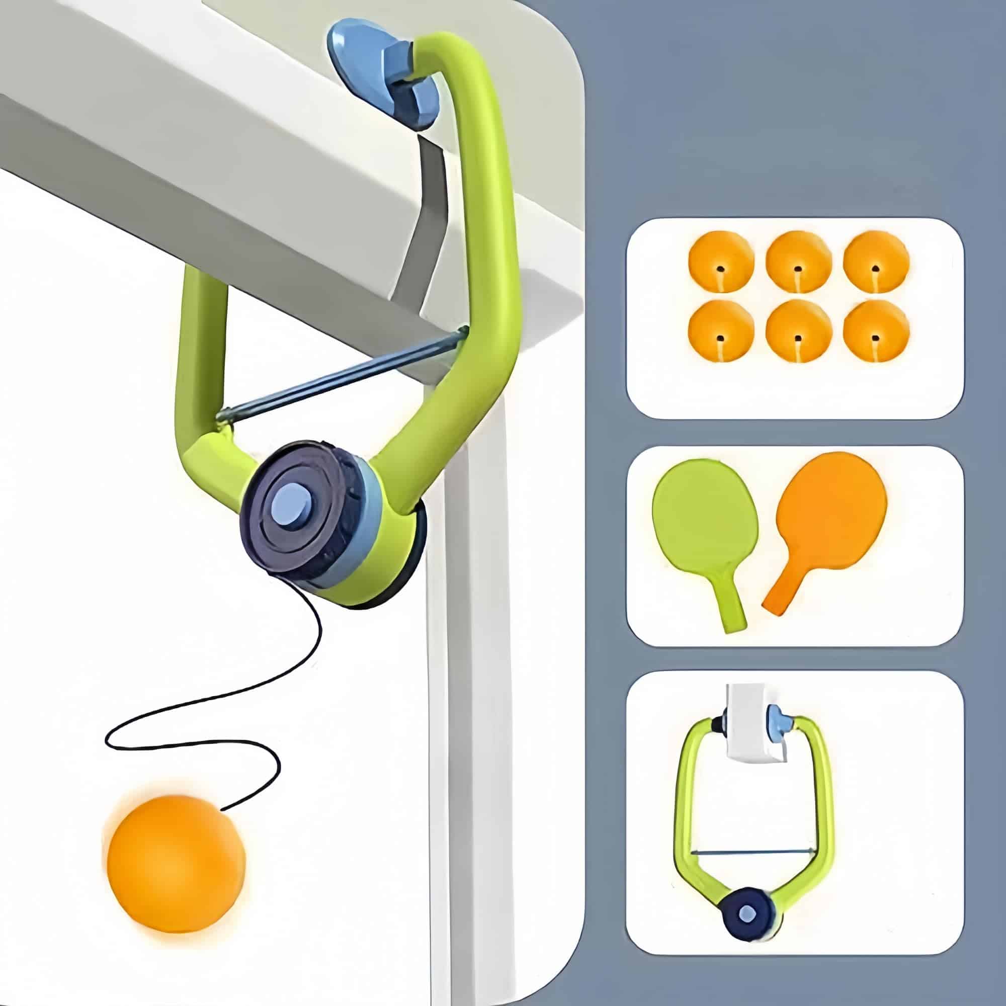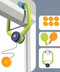 Material: Plástico. Proyectos aplicables: entrenamiento de tenis de mesa, interacción familiar;. Ámbito de uso: Áreas que se pueden colgar e interactuar, como marcos de puertas, vigas suspendidas y barras horizontales;. Set: 1 rack de suspensión, 6 pelotas de tenis de mesa de entrenamiento y un par de raquetas de tenis de mesa;. Mejora la entrenamiento de reflejos y habilidades de reacción.