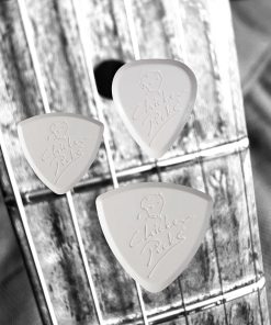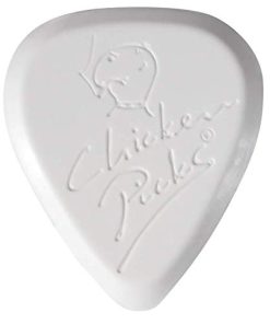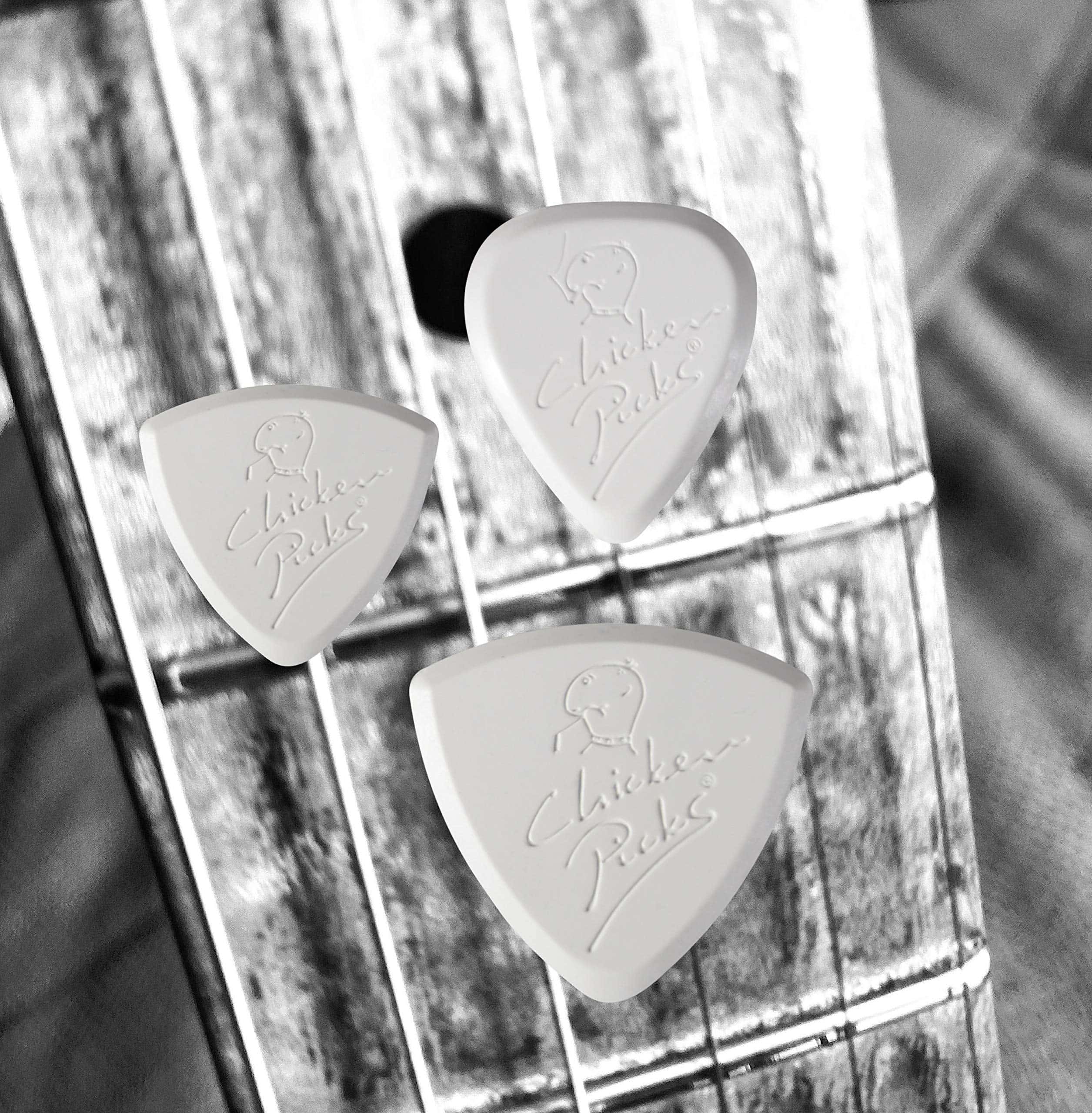 El sonido es mucho más sólido porque las púas de guitarra ChickenPicks tienen más masa. No son esas delgadas y molestas sobretonos metálicos no deseados, sino un tono más pronunciado, fuerte y brillante con mucho bajos. Tu guitarra nunca sonó tan llena y nunca tocaste rápido y picaste con tanta precisión. Fácil de sostener. El grosor del cuerpo, junto con la textura de estas púas, hace que sea muy fácil de sostener sin necesidad de apretar demasiado. Púas de guitarra de plástico termoestable de diseño especial. El plástico termoestable es muy rígido (no se dobla en absoluto), eliminando cualquier arrastre de la púa y permitiéndote controlar tu sonido. El material también ayuda a evitar bordes astillados y garantiza meses, si no años, de tocabilidad ininterrumpida. Debido al material y bordes biselados, las púas de guitarra ChickenPicks son muy adaptables a armónicos de pellizco, que nunca han sido tan fáciles de crear. Los bordes biselados permiten que la púa se deslice sobre y fuera de las cuerdas sin esfuerzo, haciendo que sea más fácil de tocar (en comparación con una púa gruesa o pesada convencional). ¡Las púas de guitarra ChickenPicks son utilizadas por los mejores guitarristas de todo el mundo!