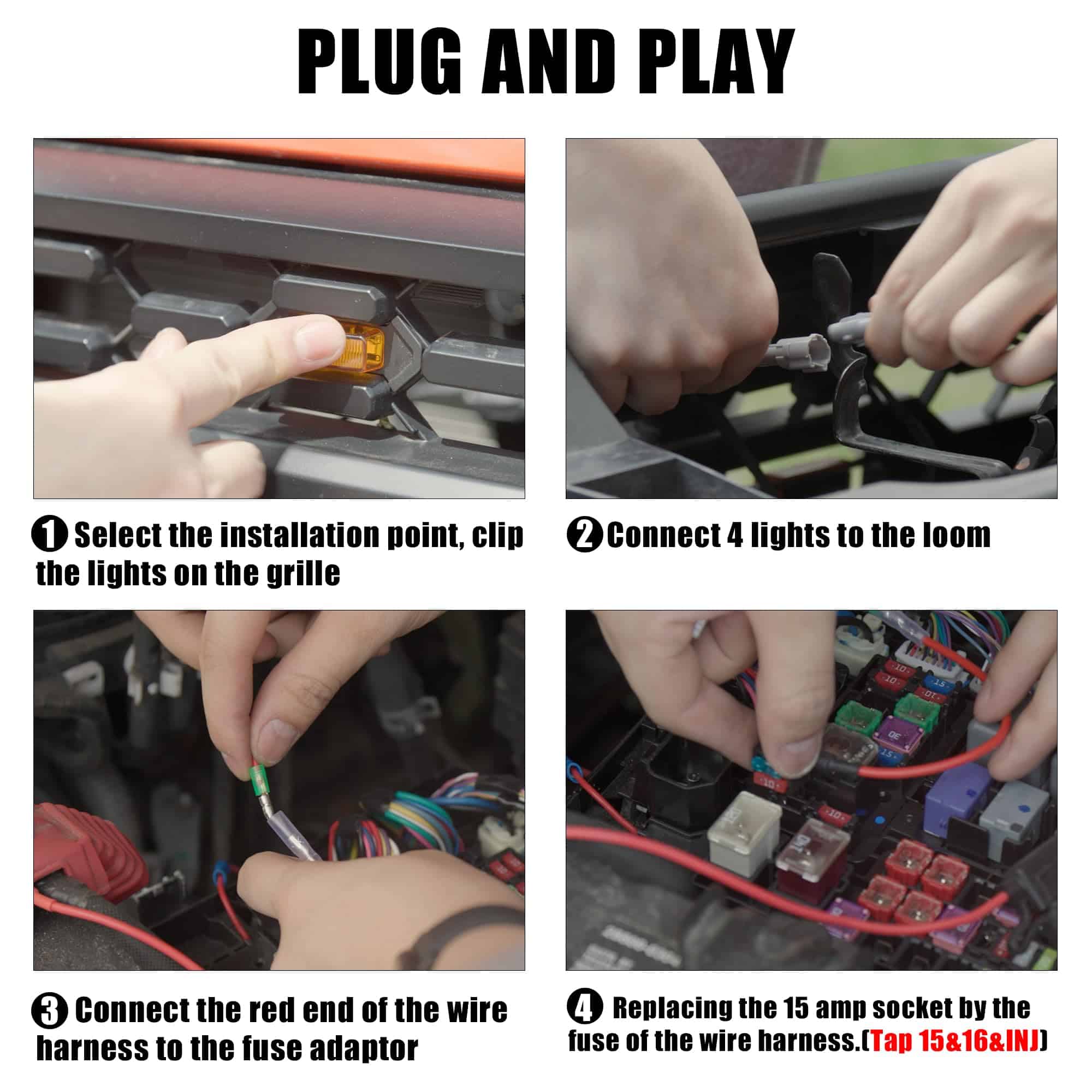 Seven Sparta 4 PCS Luces LED para Parrilla con Adaptador de