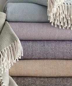 Origen: Portugal, Material: 100% Algodón, Diseño tejido en espiga, Borla natural retorcida