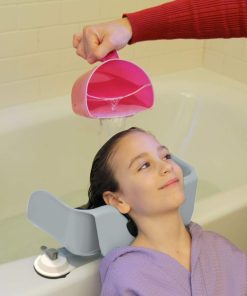 Mantén el cabello limpio. Sin la Batalla. / Mantén el jabón y el agua fuera de los ojos pequeños y el estrés fuera del lavado de cabello! Shampoo Buddy convierte tu fregadero de cocina o bañera en un tazón de champú. Soporta el cuello y los hombros de tu hijo y permite una experiencia de lavado de cabello cómoda y controlada. El jabón y el agua se disponen en la bañera o el fregadero y no llegan a los ojos y oídos pequeños. / Fácil de instalar. Fácil de usar. / Shampoo Buddy se adhiere a cualquier superficie plana de 2.75″ de ancho o más. Las ventosas contienen una capa de gel de poliuretano pegajoso que crea una fuerte succión sin dañar tu superficie. Shampoo Buddy es una bandeja de enjuague/tazón de champú producto híbrido. Se adhiere a tu encimera para que el jabón y el agua se drenen directamente en tu fregadero de cocina. ¡No se necesita manguera de drenaje o cubo!