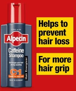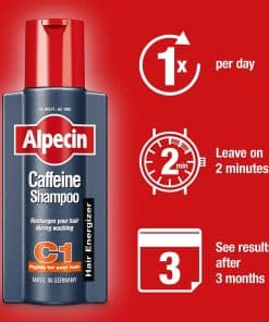 Alpecin C1 Caffeine Shampoo (250ml): El ingrediente activo de cafeína estimula el crecimiento del cabello masculino existente y evita que las raíces del cabello se vuelvan inactivas prematuramente, ralentizando así la caída del cabello. Simplemente deje actuar en el cabello durante 2 minutos antes de enjuagar. La cafeína viajará a lo largo del tallo del cabello hasta la raíz del cabello, haciendo que el cabello se sienta más lleno y grueso.