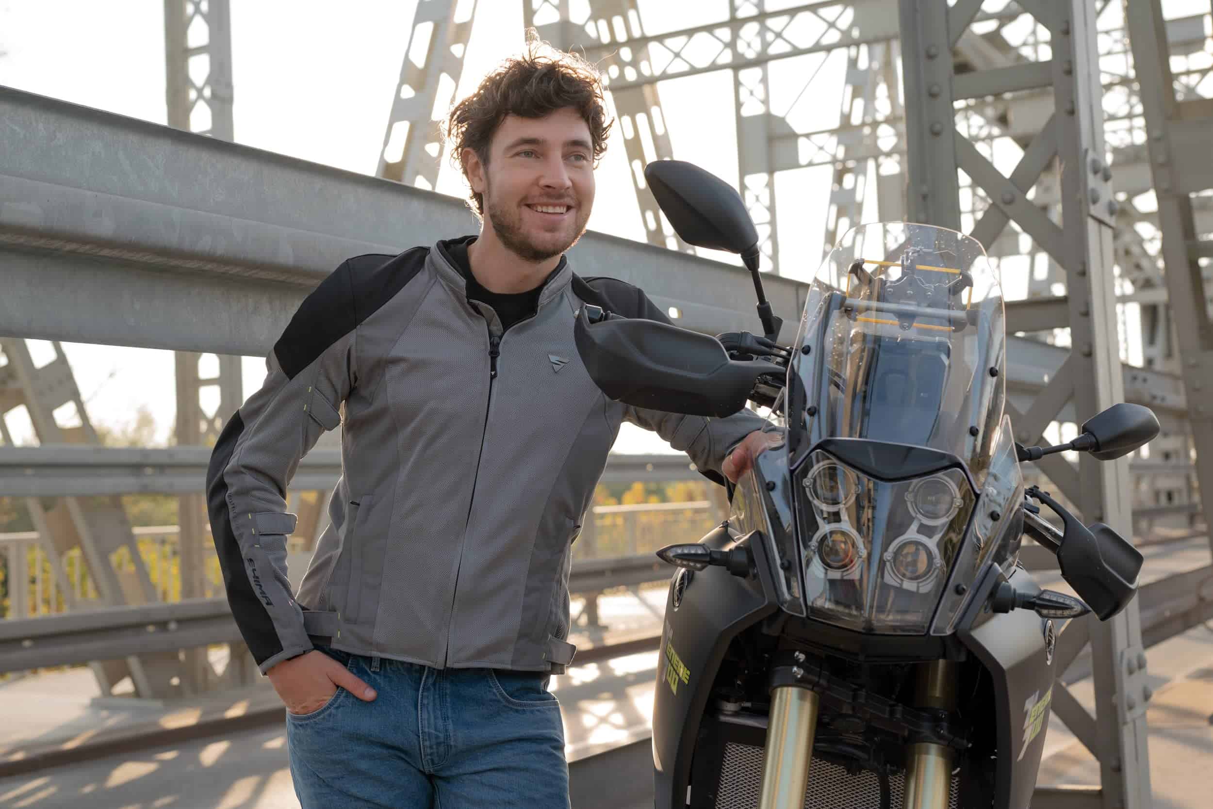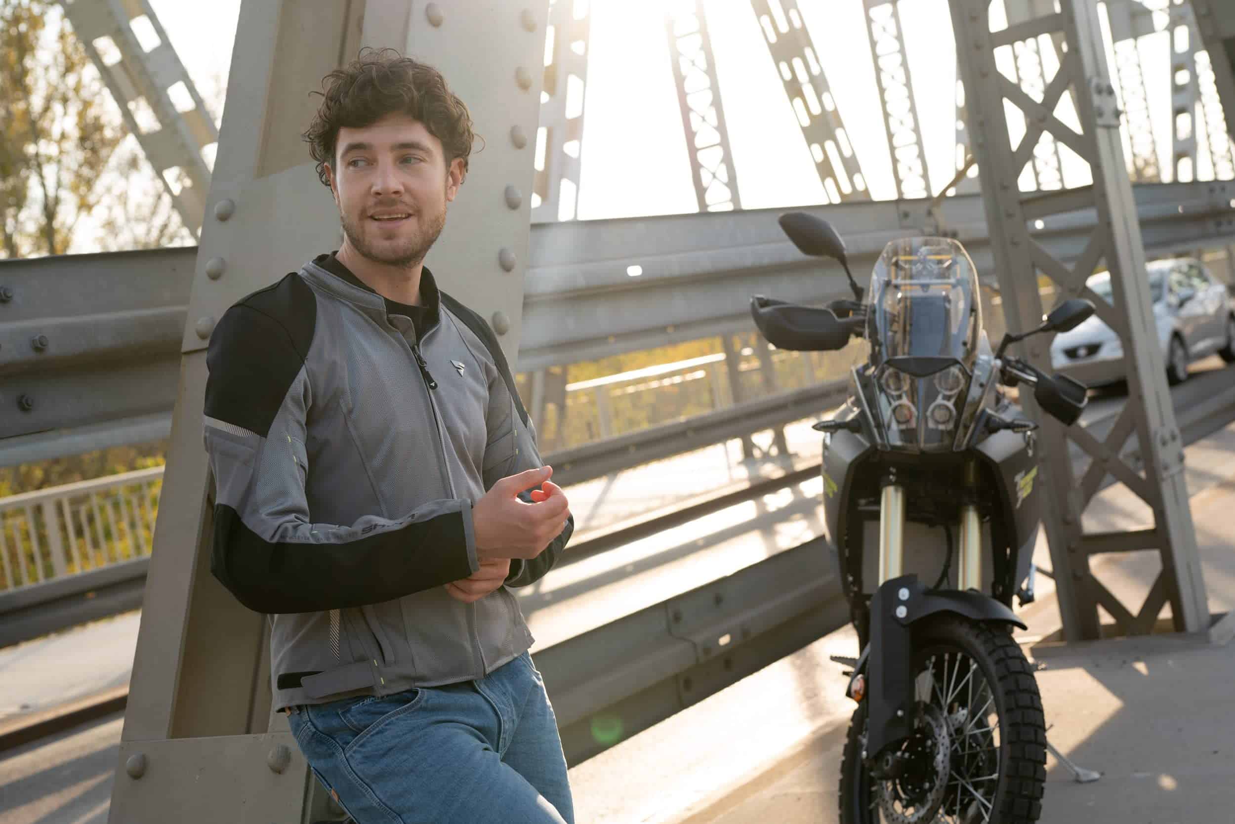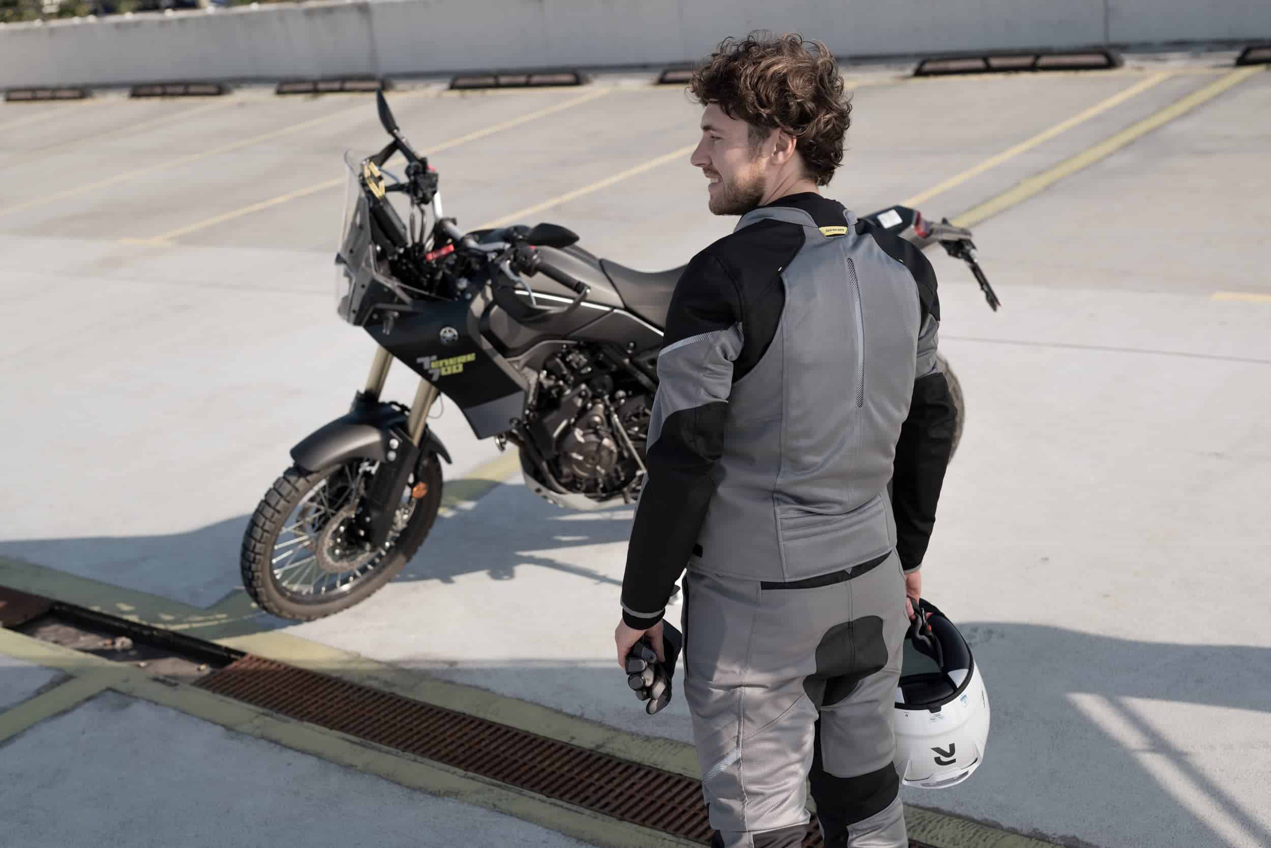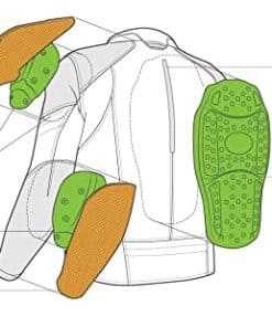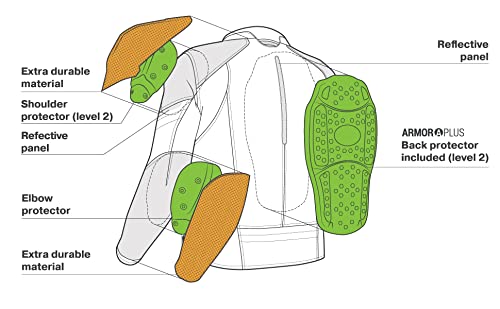 2. PROTECCIÓN – Protectores de espalda, hombros y codos certificados CE y tejido extra resistente al desgaste en hombros y codos, costuras dobles reforzadas.