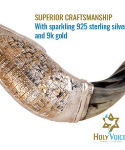 Los mejores artículos de uso diario, ornamentos o instrumentos llenan tu corazón y tu hogar. ¡Experimenta tu espiritualidad y mejora tu espacio con tu shofar decorativo de Holy Voice! Tu cuerno tradicional cuenta con una belleza impresionante gracias a su plateado en plata esterlina 925 y chapado en oro de 9k. ¡Descubre la perfecta unión de fe, moda y función en tu exquisito y cásher shofar!
