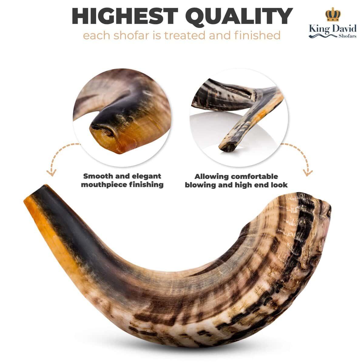 Las hermosas ceremonias religiosas pueden seguir ahora las antiguas tradiciones con el especial cuerno de Shofar, un instrumento único tocado por los evangélicos durante los momentos más solemnes. Nuestros mejores artesanos israelíes han seguido los antiguos pasos de crear Shofars perfectos, para que todas las ceremonias religiosas puedan ser acompañadas por un sonido profundo y hermoso. ¿Por qué debería comprar este artículo? Porque está bellamente hecho y puede ser pasado de generación en generación. Hecho de carnero natural y pulido a la perfección para garantizar un sonido profundo cada vez que se toca, el tradicional Shofar judío es un instrumento religioso como nunca antes visto. Algunas de las increíbles características de este producto: El Shofar tradicional produce un sonido profundo y hermoso que ofrecerá una sensación especial a cualquier ceremonia Se puede utilizar para cualquier ceremonia, incluyendo la oración Musaf en Rosh Hashanah, el final de Yom Kippur y todas las mañanas de la semana en el mes de Elul Está hecho al 100% de carnero natural, garantizando el sonido profundo y claro El único Shofar está hecho a mano por artesanos judíos especializados que emplean una técnica antigua El instrumento angelical está pulido y esterilizado Está hecho con un proceso de limpieza y acabado único que se ha desarrollado durante cientos de años para lograr la sensación y el sonido perfectos Se puede pasar de generación en generación, siendo producido con una técnica que se ha mantenido durante miles de años El paquete incluye: Un Shofar de carnero Aceite de unción para el mantenimiento del cuerno Un cepillo con mango delgado para limpiar el Shofar Un manual impreso sobre cómo tocar un shofar AÑADIR AL CARRITO AHORA