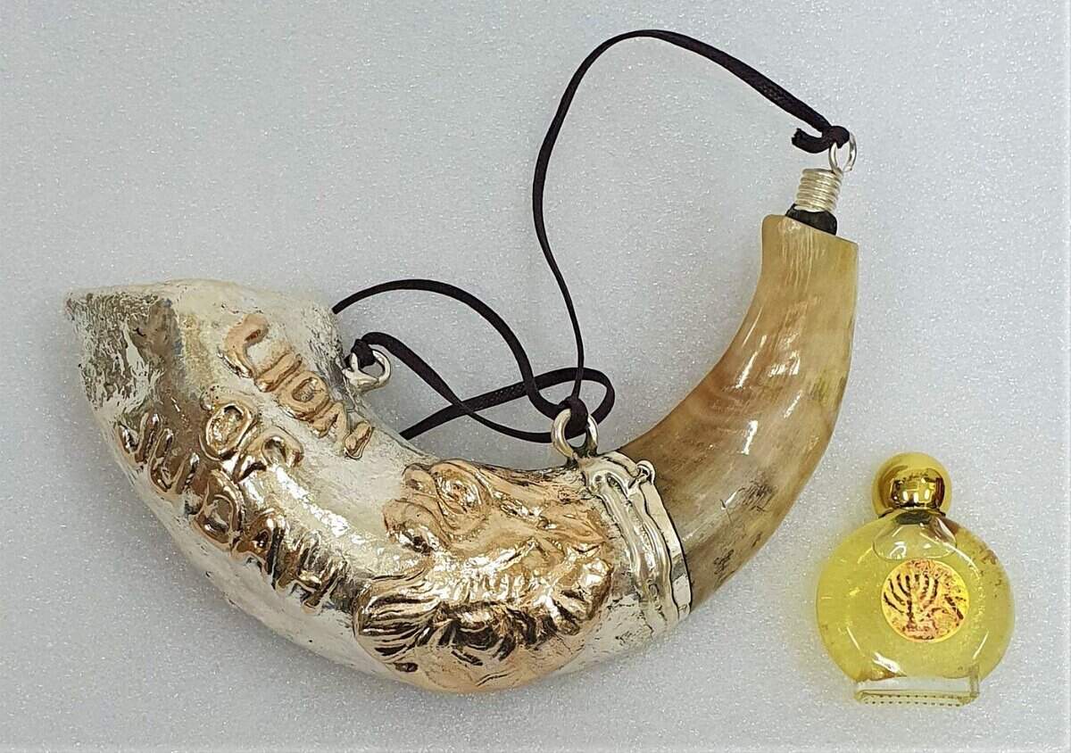 Shofart Israel Silver 925 Anointing Ram Shofar Lion Of