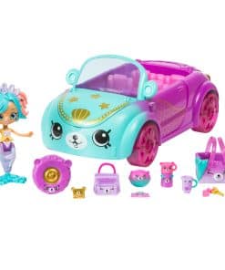 ¡Vamos a la carretera y sumérgete en el mar con los Lil’ Shoppies en el crucero coral Mermaid! ¡Los Lil’ Shoppies se han convertido en hermosas sirenas! Abre las ventanas para encontrar sorprendentes accesorios Petkins para tu picnic submarino. Así que sumérgete y ven a dar una vuelta en el convertible más a la moda alrededor. Con su hermoso trabajo de pintura de sirena, será un paseo dulce. Incluye puertas, capó y maletero que se abren para guardar todos tus accesorios Petkin para el picnic. El crucero coral Mermaid también viene con la exclusiva sirena Coralee. ¡Lleva a Coralee y sus amigos de paseo por el arrecife!