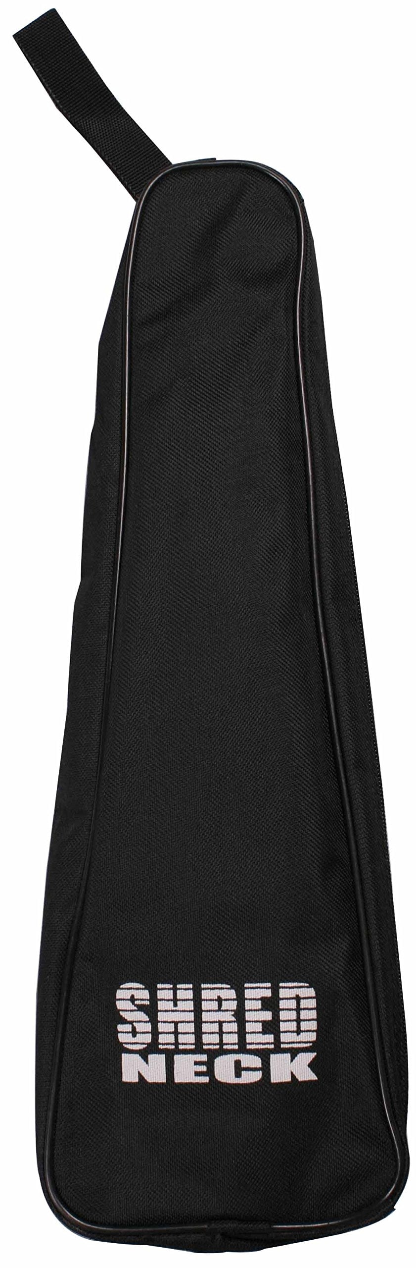 LA HERRAMIENTA DEFINITIVA DE PRÁCTICA Y CALENTAMIENTO PARA BAJISTAS QUE SE PUEDE LLEVAR A CUALQUIER LUGAR. Billy Sheehan ha estado usando el Shredneck Bassneck durante muchos años. Trabajando con Billy, Shredneck desarrolló dos nuevos modelos de Billy Sheehan Signature Bassneck. ¡100% diseñados por Billy mismo! Disponibles en dos colores y modelados según su estilo signature, estos nuevos Bassnecks te permitirán practicar en cualquier momento y lugar cuando un bajo de tamaño completo no sea conveniente. El SHREDNECK (Patente) es la herramienta definitiva de práctica y calentamiento para guitarristas. Cuando no es conveniente tocar la guitarra/bajo, o si no se dispone de una guitarra/bajo, o si estás viajando, de camino a un concierto, relajándote o simplemente viendo la televisión, aún puedes practicar y desarrollar tus habilidades de interpretación. El SHREDNECK está diseñado para tocar y sentirse como los primeros trastes de una guitarra/bajo/acústica según el modelo. Las máquinas de afinación se utilizan para ajustar la tensión de la cuerda y adaptarse a diferentes estilos de interpretación y situaciones (no se utilizan para afinar el SHREDNECK). La separación de los trastes y el ancho del mástil están modelados según los primeros trastes de una guitarra/bajo eléctrico/acústico según el modelo. El SHREDNECK te ayudará a desarrollar tus habilidades de interpretación, especialmente tu dedear y velocidad de interpretación. Dado que el SHREDNECK utiliza cuerdas y trastes reales, también desarrollarás callosidades necesarias para tocar. El SHREDNECK también es una forma ideal de calentar antes de tocar o interpretar. También puedes usar el SHREDNECK para mantenerte calentado entre sets. El SHREDNECK no es un ejercitador de manos; es una herramienta de práctica y calentamiento. Como intérprete, querrías que tus manos y dedos estén ágiles y rápidos. Los ejercitadores de manos pueden construir fuerza, lo que creemos que realmente puede ralentizarte y hacer incómodo tocar. ¡El SHREDNECK es lo más parecido a tocar el bajo que no sea tocar realmente el bajo! Ten en cuenta que el Shredneck no es un instrumento, por lo que no se afinará, es puramente una herramienta de práctica.