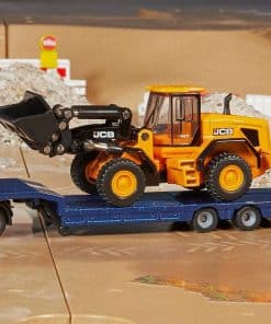 Detallado modelo de juguete de un camión MAN con remolque bajo y cargador de ruedas JCB para jugar y coleccionar, ideal para entusiastas de camiones jóvenes y mayores – Aspecto realista, Rampa plegable para descargar, Brazo de carga móvil, Pala móvil en el cargador de ruedas – Regalo ideal para niños en un cumpleaños, otra ocasión especial o simplemente porque sí – Estructura metálica robusta y estable, Excelente movilidad gracias a los neumáticos de plástico – Contenido: 1x camión MAN siku 1790 con remolque bajo y cargador de ruedas JCB, Material: metal/plástico, Escala: 1:87, Dimensiones: 19.8 x 3.8 x 5.3 cm, Peso: 0.226 kg, Color: azul/amarillo, Serie: SIKU Super