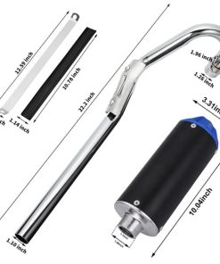 Este kit de modificación de escape completo incluye un silenciador de escape, un tubo de escape, un clip metálico, una junta de goma negra, dos juntas y un juego de tornillos. Diseñado para modelos de Dirt Pit Bike de 90cc, 110cc y 125cc, este accesorio mejorará el rendimiento sonoro de tu motor y filtrará los olores no deseados.