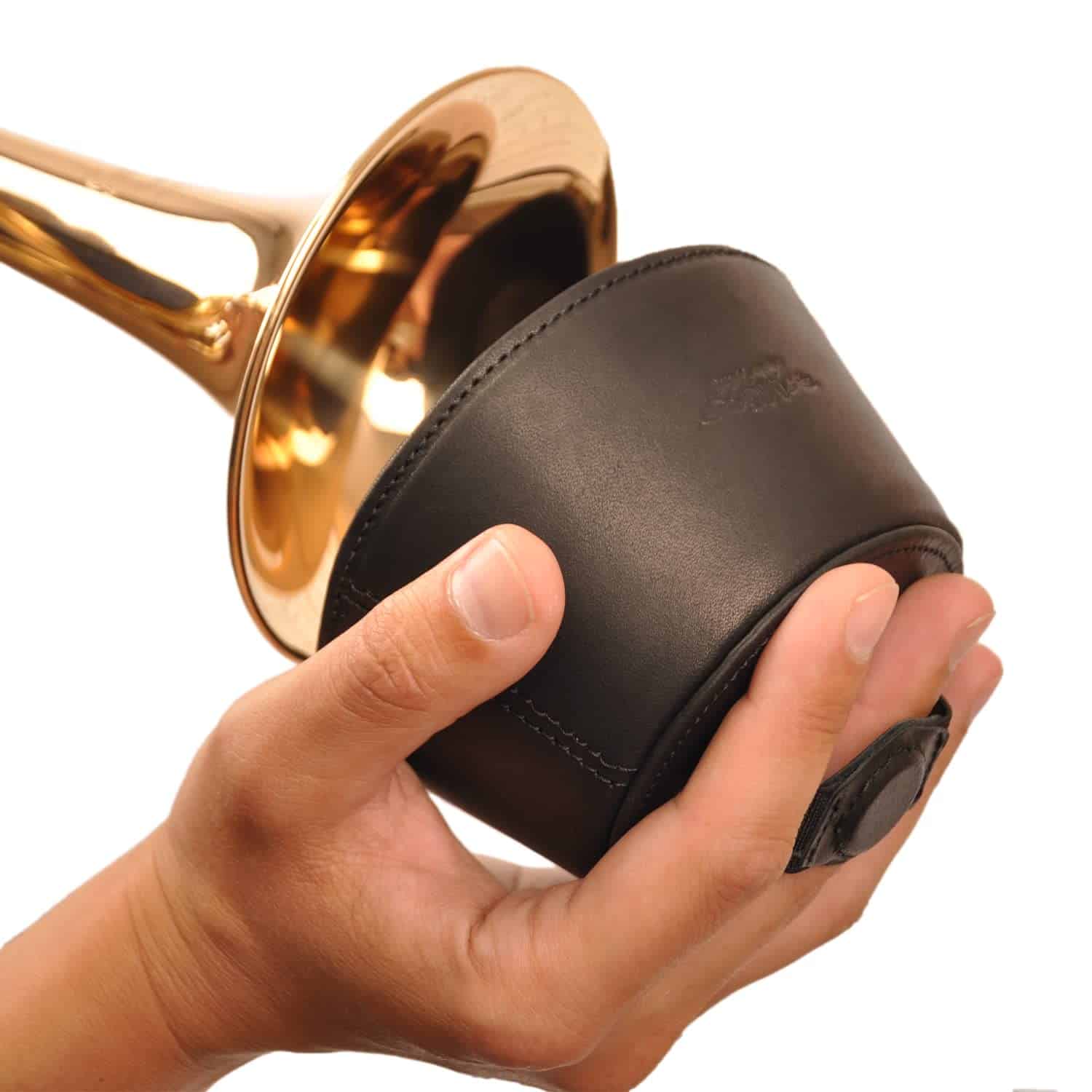 Nuestro silenciador de cuero combina la conveniencia con características bien pensadas para mejorar tu actuación. Debido a la capa de cuero en su interior, el silenciador proporciona un sonido mucho más nítido que los silenciadores de trompeta con capas interiores de tela. Las propiedades del cuero ayudan a reflejar el sonido mucho mejor y lograr efectos sonoros más interesantes. Lo que definitivamente notarás durante la práctica es más precisión y un sonido más áspero. De alguna manera, debido a su forma, este silenciador de cuero se asemeja a un silenciador de jazz tradicional, que es bastante popular entre los músicos de jazz. Sin embargo, a diferencia de los modelos de goma y metal, no añade peso extra, lo cual es muy apreciado si vas de gira. También mantiene su forma y propiedades incluso si se cae. Como se trata de un silenciador magnético, no tendrás ninguna molestia durante el concierto, con la ayuda de un imán incorporado en el elástico, puedes colocarlo rápidamente en el atril tan pronto como necesites tener las manos libres y luego usarlo nuevamente rápidamente para cambiar entre los timbres. El elástico permite fijar de forma fiable el silenciador en los dedos en lugar de sostenerlo, lo que proporciona mayor comodidad para los trompetistas. Con la ayuda de nuestro silenciador de trompeta de cuero, obtienes más posibilidades para experimentar y hacer que tu música sea emocionante y emocional.