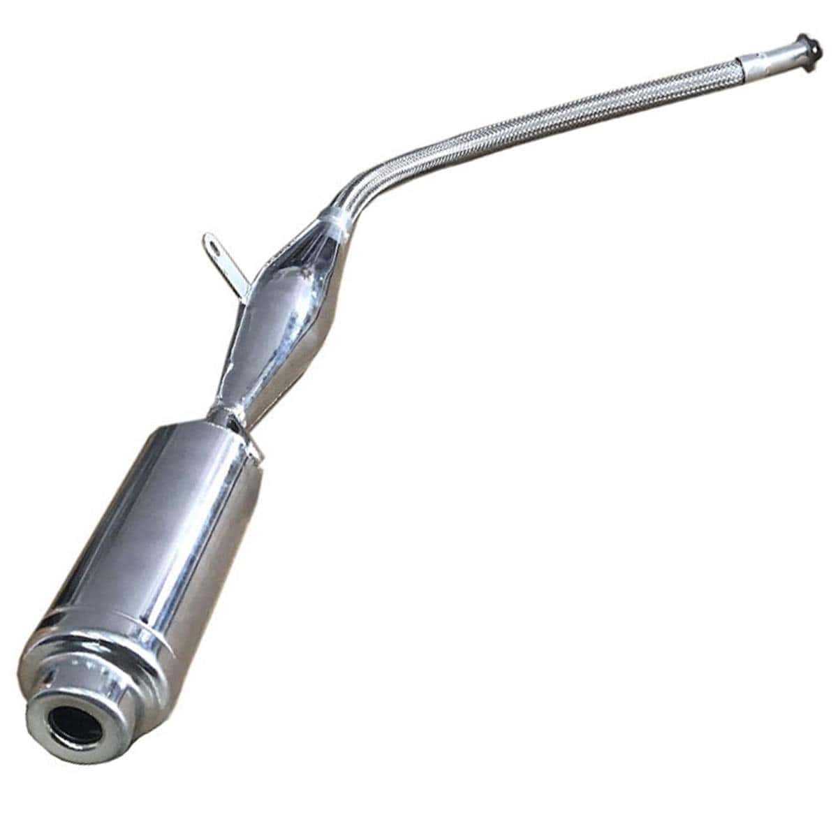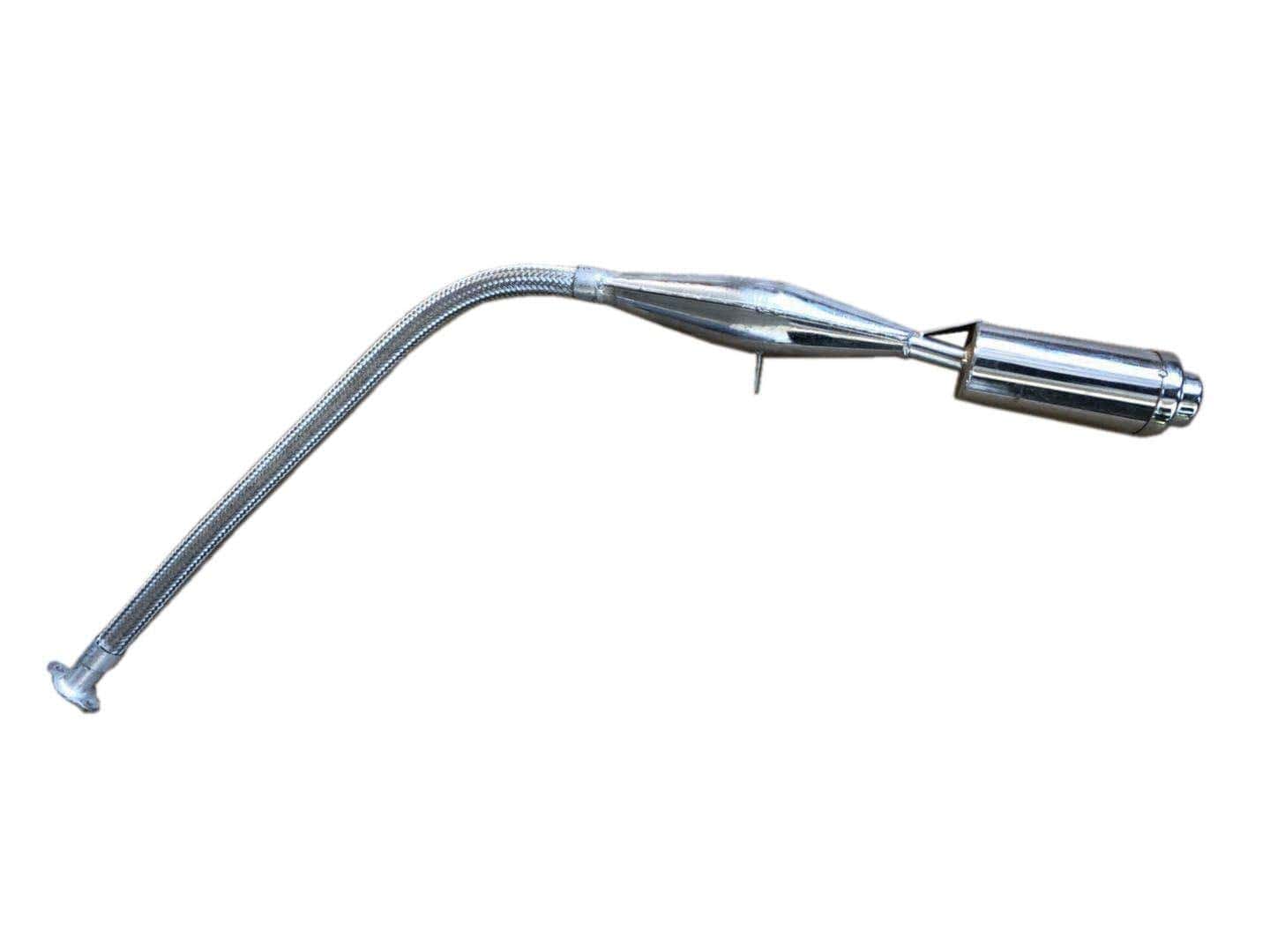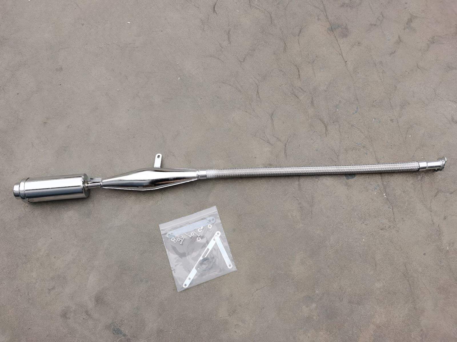 Poo Poo Pipe Muffler Para propósitos de carreras o simplemente para andar. Para kit de 2 tiempos 48cc/66cc/80cc Viene con tubo flexible de acero inoxidable. Viene con punta silenciadora.