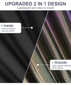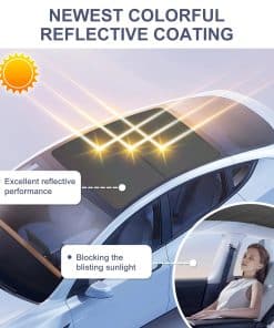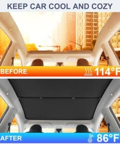 Upgraded 2-in-1 design: the outer layer boasts high-density reflective dots, while the inner layer features soft stretch fabric. This combination offers excellent heat insulation and reflection, making installation a breeze and keeping it incredibly lightweight. Enjoy top-notch sun protection with our innovative design: The outer layer is made of colorful and dazzling reflective coating, which glitters in the sun. Its excellent reflective properties effectively block harsh sunlight, UV rays, preventing sunburn and safeguarding your skin. Keep cool and comfortable with our roof sunshade, reducing interior temperatures from 120 F to a refreshing 80 F. Beat the summer heat and stay cozy on your drives with ease. Ensure a perfect fit with our Tesla Model Y-exclusive sunshade, designed to fit snugly without any gaps or sagging. Specially crafted insertion clips ensure a secure hold without damaging your car, while the premium color scheme seamlessly blends with your car’s interior for a harmonious aesthetic. Installation and warranty: You can Install the roof sunshade correctly according to the manual in less than 10 minutes. We provide a one-year warranty. If any questions, please feel free to contact us at any time.