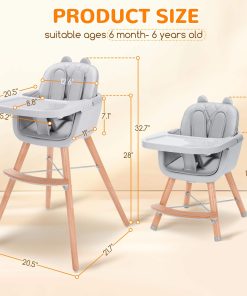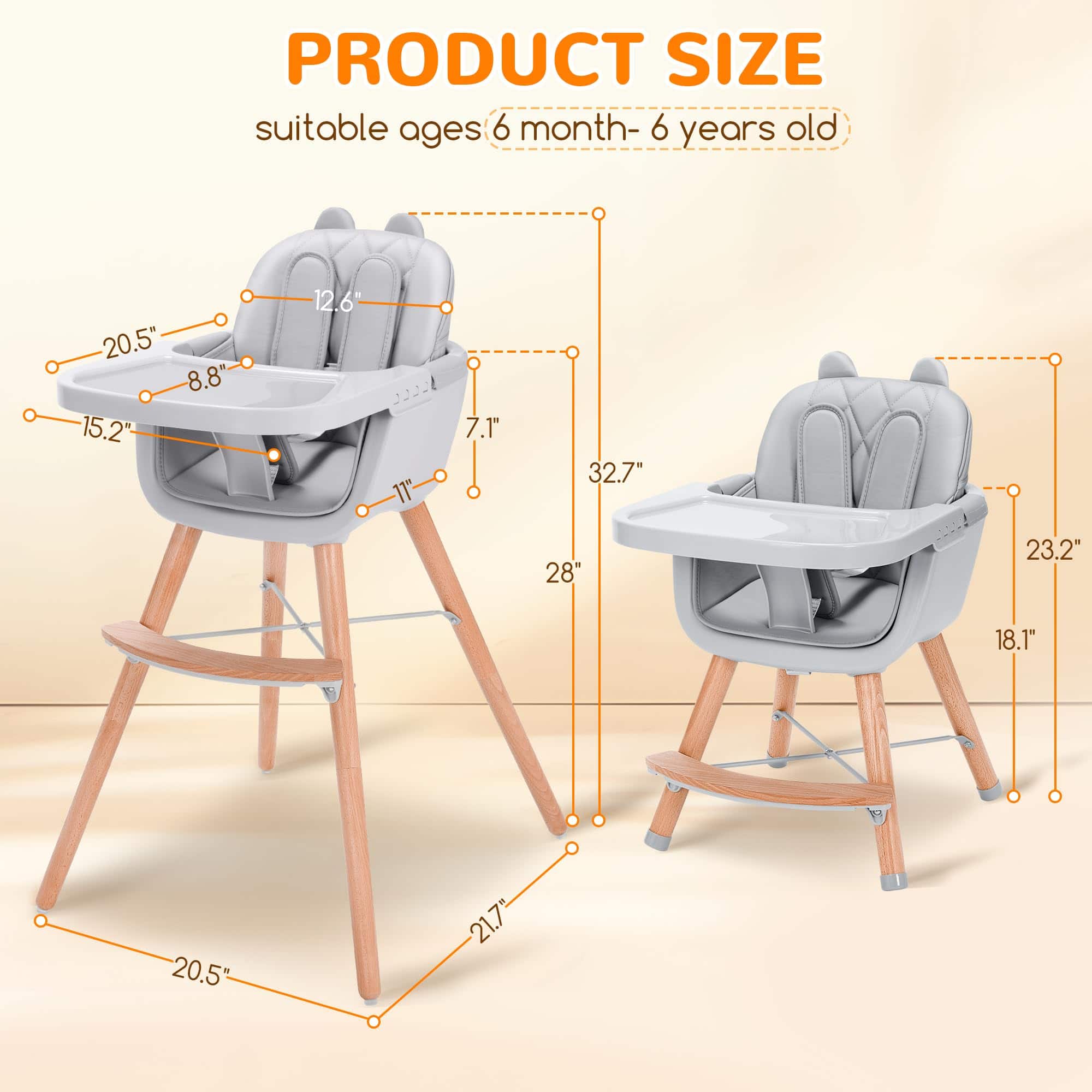 3. De 6 meses a 6 años: ¡Disfruta de esta silla alta 3 en 1/silla elevadora/silla para niños durante años! Simplemente ajusta las patas y el reposapiés para adaptarse a las necesidades de tu hijo; Ya sea una silla de alimentación, silla para niños pequeños o silla de juegos para niños, se convierte fácilmente.