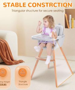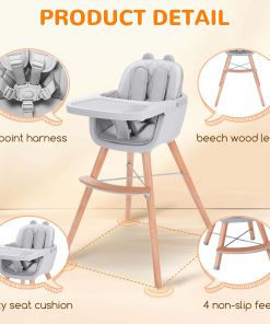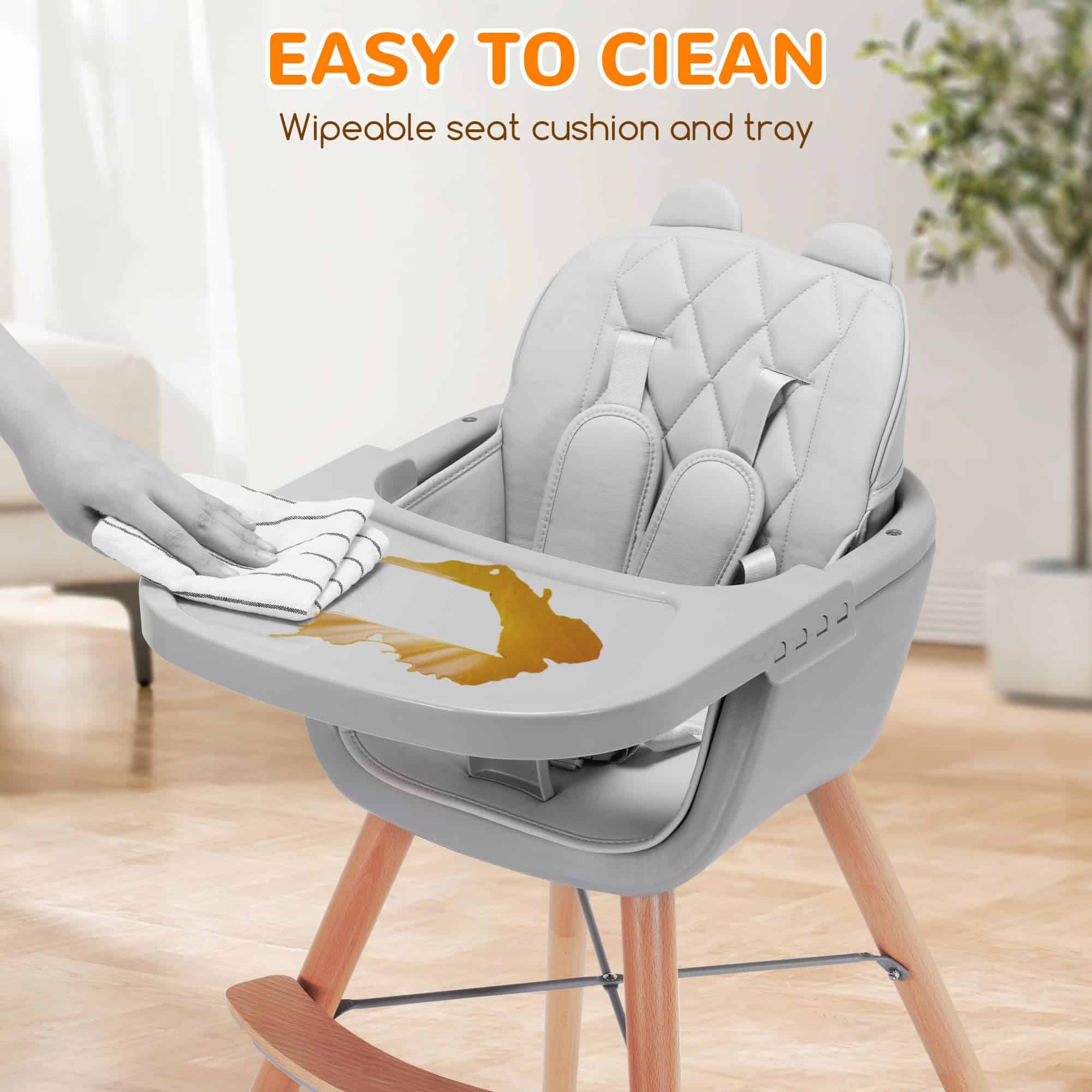 2. Materiales aptos para la piel: La silla alta está construida con madera de haya y plástico libre de BPA, asegurando que la salud de su bebé no se vea comprometida; El asiento suave está recubierto con un material de cuero artificial premium más grueso, que es suave para la delicada piel de su hijo; El diseño cuidadoso de estos materiales no solo agrega comodidad, sino que también ofrece durabilidad duradera para su pequeño.