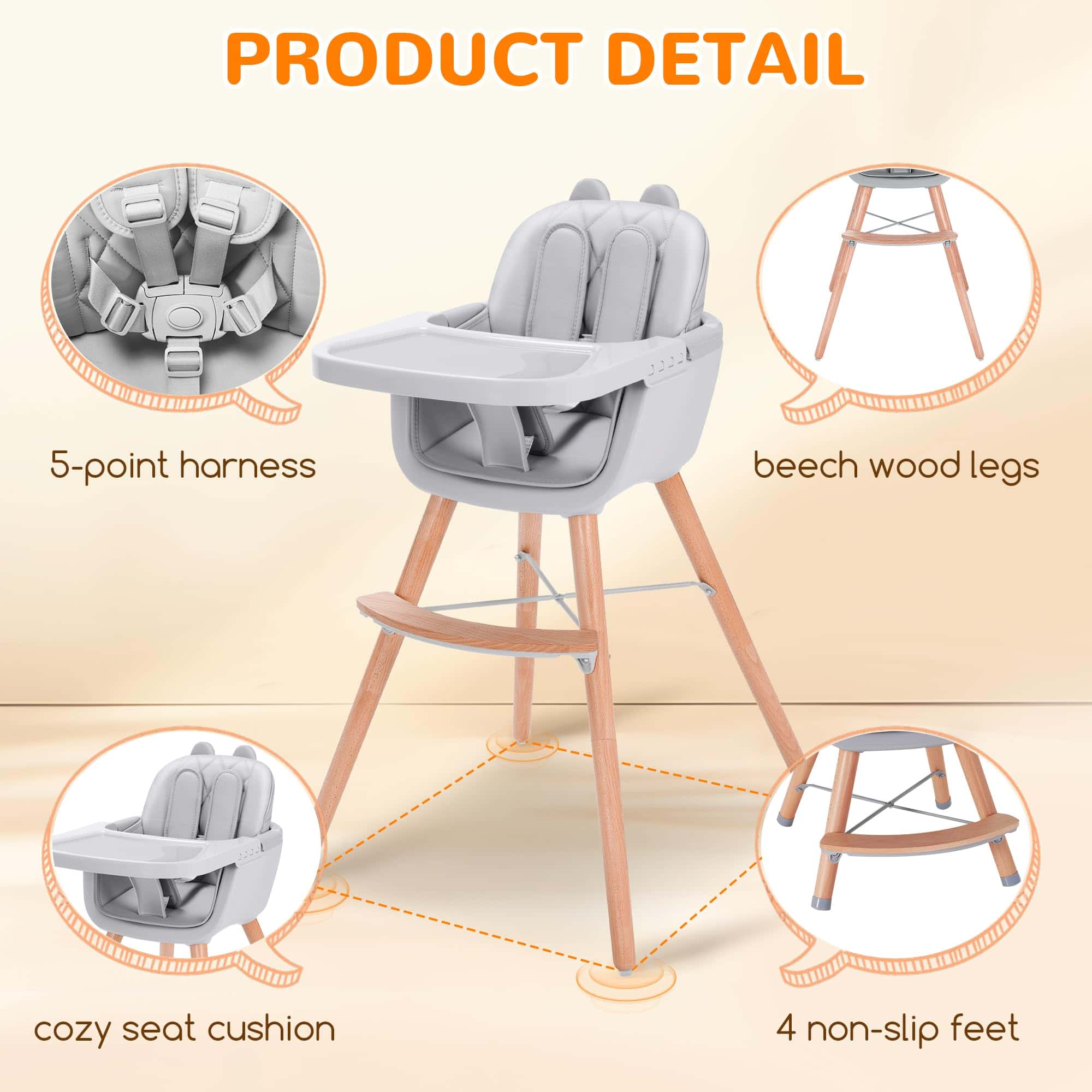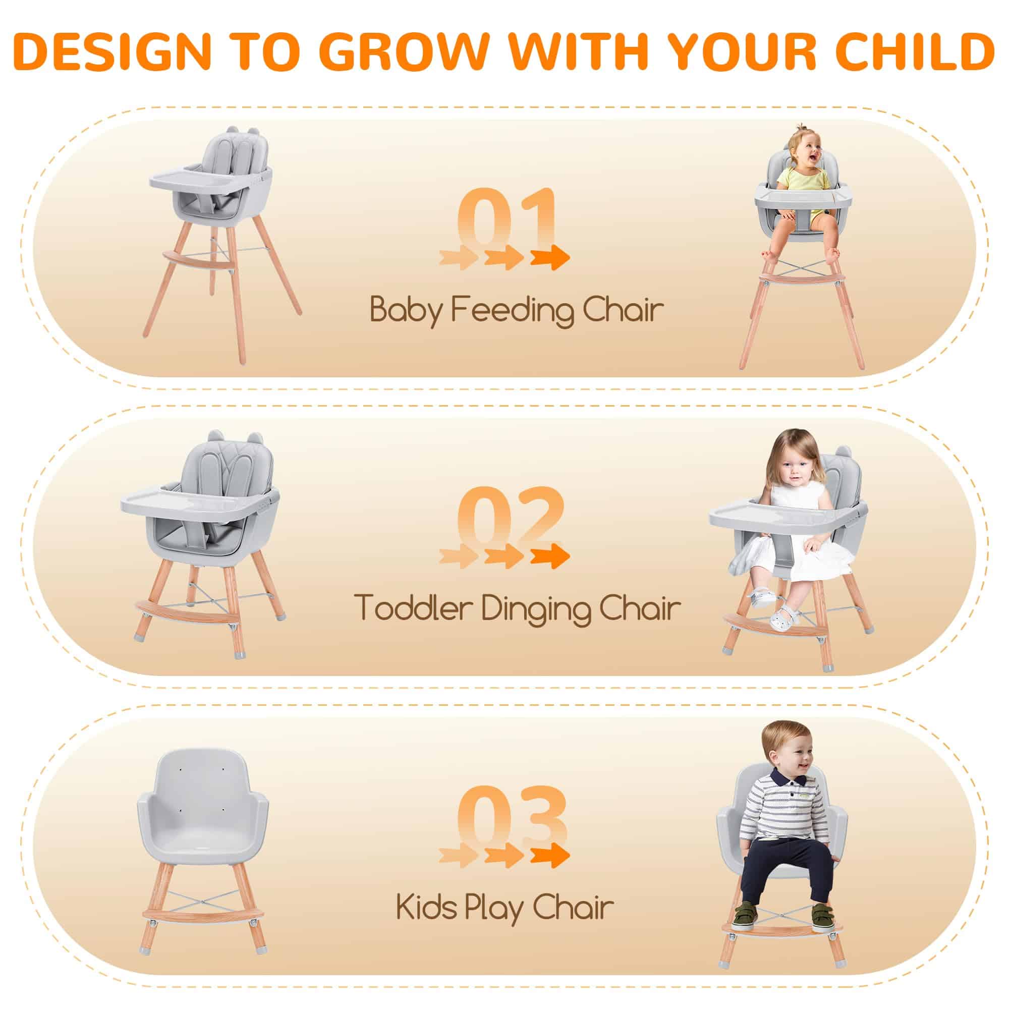 Silla alta 3 en 1 para bebés, silla alta de madera