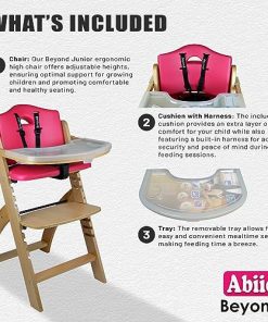 Descripción: La silla alta Abiie Beyond Junior Y es tan versátil y flexible que literalmente podría ser la única silla de comedor que su hijo necesita desde los seis meses hasta la edad adulta. En cuestión de segundos, esta silla se transforma de una silla alta a una silla para niños pequeños a una silla de comedor perfectamente dimensionada para personas de todas las edades. Sistema EZ-Seat: La clave es el sistema patentado EZ-Seat que permite el ajuste rápido del asiento y reposapiés para adaptarse fácilmente a quien necesite un asiento. Amarás la versatilidad de esta silla cuando veas por ti mismo lo fácil que se transforma para satisfacer una variedad de necesidades. Garantía: La silla alta tiene una garantía del fabricante de 3 años más opciones de extensión de bajo costo de 1, 2 o 3 años. Premios: -Ganador del Oro NAPPA 2015: Los Premios Nacionales de Publicaciones de Parenting (NAPPA) son uno de los programas de premios más respetados y de mayor duración en el país. Con 25 años de experiencia en la industria, han sido continuamente celebrados como la principal fuente para padres y profesionales que buscan los mejores productos para sus hijos y familias. Abiie es el orgulloso ganador del Premio Oro 2015. Silla alta galardonada con Premio Baby Maternity 2014: El programa de premios de la revista Baby Maternity es único en que todas los productos presentados son revisados por mamás y profesionales en educación temprana. Abiie fue seleccionado como la silla alta galardonada en 2014. La silla alta está construida con madera de haya cultivada europea de alta calidad que es reciclable y sostenible. Esta madera ha sido cuidadosamente seleccionada para mantener los bosques productivos. También pasó por una esterilización por calor de última generación para garantizar un entorno higiénico para su hijo.