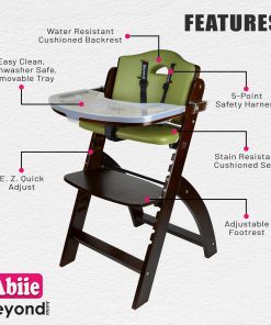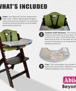 Resumen: La silla alta Abiie Beyond Junior Y es tan versátil y flexible que literalmente podría ser la única silla de comedor que tu hijo necesita desde que tiene seis meses hasta su edad adulta. En cuestión de segundos, esta silla se transforma de una silla alta a una silla para niños pequeños a una silla de comedor perfectamente dimensionada para personas de todas las edades. Sistema EZ Seat: La clave es el sistema patentado EZ-Seat que permite el ajuste rápido del asiento y reposapiés para adaptarse fácilmente a quien necesite un asiento. Te encantará la versatilidad de esta silla cuando veas por ti mismo lo fácil que se transforma para satisfacer una variedad de necesidades. Garantía: La silla alta tiene una garantía del fabricante de 3 años y opciones de extensión de bajo costo de 1, 2 o 3 años. Premios: -Ganador del oro NAPPA 2015: Los Premios Nacionales de Publicaciones para Padres (NAPPA) son uno de los programas de premios más antiguos y respetados del país. Con 25 años de experiencia en la industria, han sido continuamente celebrados como la fuente de referencia para padres y profesionales que buscan los mejores productos para sus hijos y familias. Abiie es el orgulloso ganador del Premio Oro 2015. Silla alta ganadora del premio Baby Maternity 2014: El programa de premios de la Revista Baby Maternity es único en que todos los productos enviados son revisados por mamás y profesionales de la educación temprana. Abiie fue seleccionado como la silla alta ganadora del premio 2014. La silla alta está construida con madera de haya europea de alta calidad que es reciclable y sostenible. Esta madera ha sido cuidadosamente seleccionada para mantener los bosques productivos. También pasó por un proceso de esterilización por calor de vanguardia, para garantizar un ambiente higiénico para tu hijo.