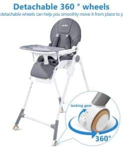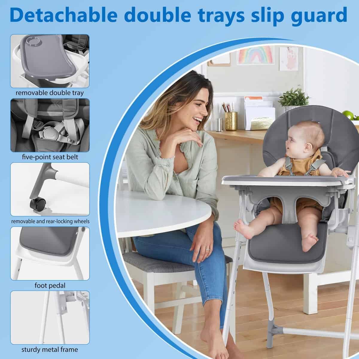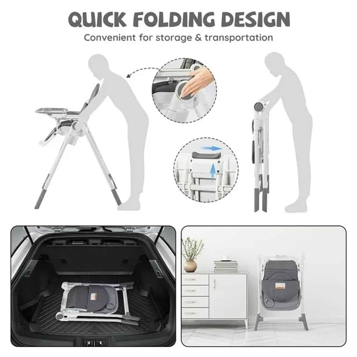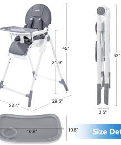 3. Fácil de limpiar, ahorra espacio en la silla alta. Asiento fácil de quitar para una limpieza profunda. Nuestras tronas están equipadas con una bandeja de plástico sin BPA extraíble para desenganchar. No se necesitan tornillos ni llaves. Se puede doblar en cuestión de segundos para ahorrar espacio cuando no se utilizan.
