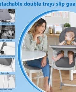 4. Crece con tu bebé: la silla alta 4 en 1 de Sejoy crece con tu bebé. Puede transformarse de una silla alta a un asiento para niños pequeños. Adecuado para bebés de 6 a 36 meses y la carga máxima es de hasta 50 libras.