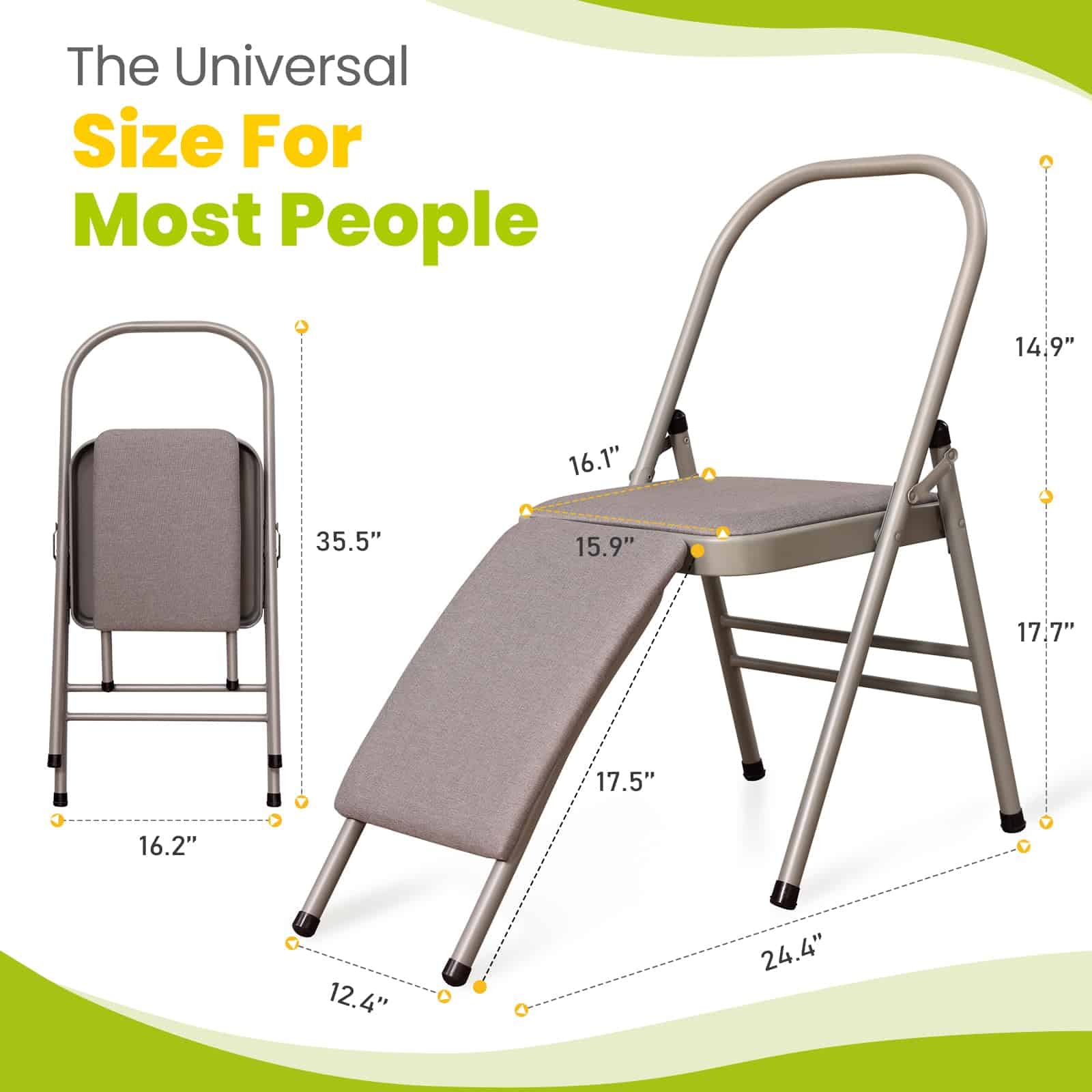 Silla Auxiliar Plegable de Yoga con Pósters de Guía de Entrenamiento, Silla de Apoyo de Yoga para Handstand con Soporte Lumbar Desmontable para Estiramiento y Entrenamiento de Equilibrio – Gran Herramienta para la Práctica de Yoga