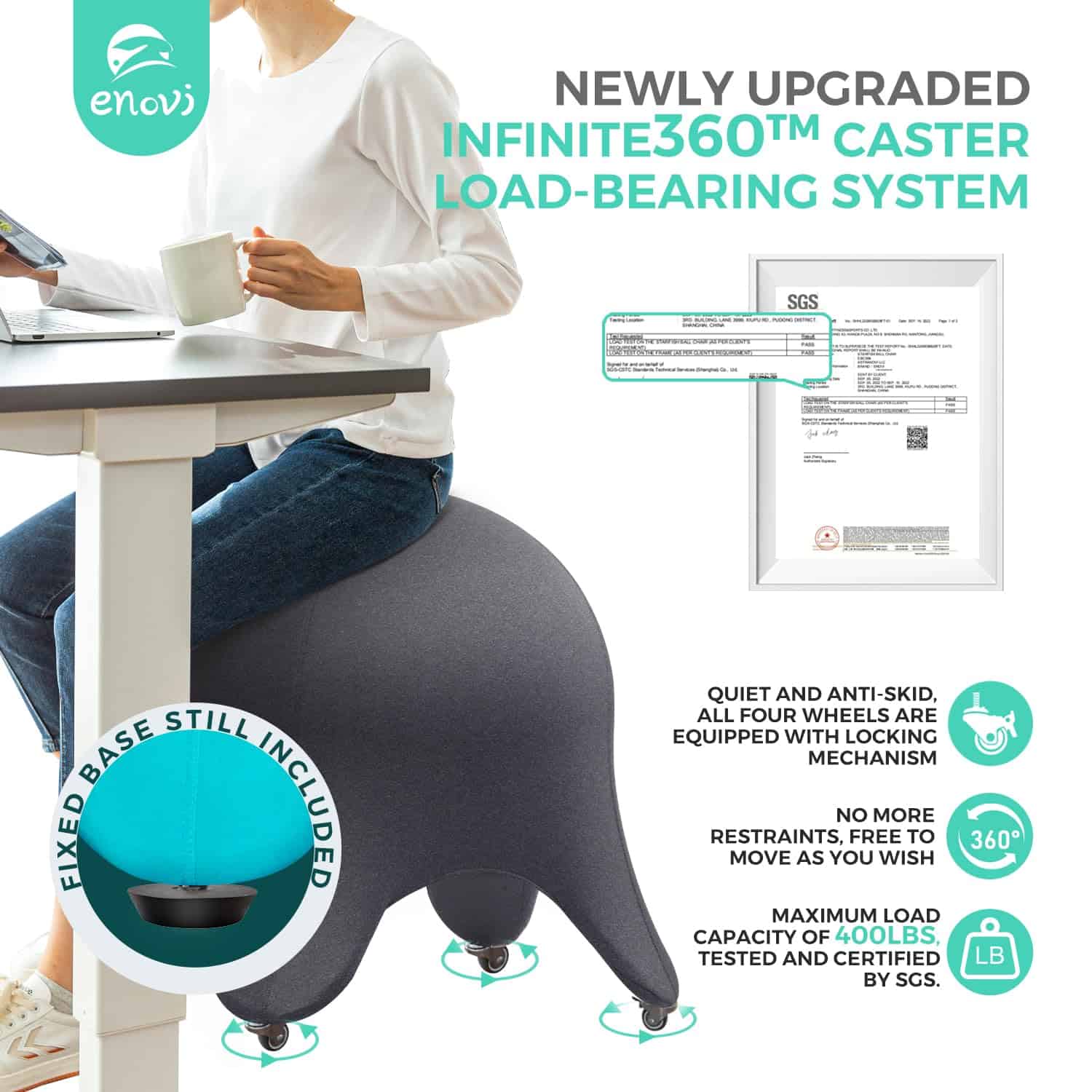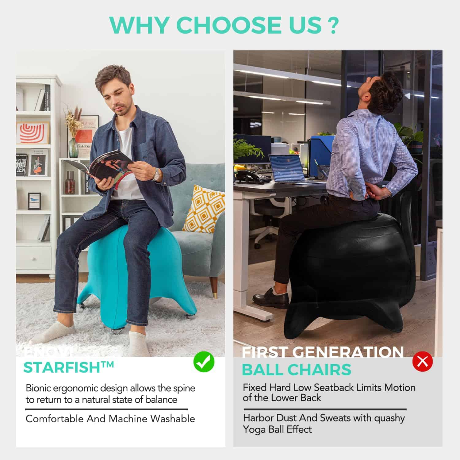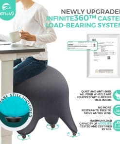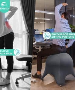 La silla de yoga con pelota ENOVI Starfish está diseñada para brindarte comodidad y apoyo mientras trabajas o estudias. Su diseño ergonómico revolucionario te permite mantener una postura adecuada, fortaleciendo los músculos centrales y de las piernas mientras te permite concentrarte en tus tareas. Con un núcleo de pelota a prueba de explosiones y un marco de acero de alta resistencia, esta silla es confiable y duradera. Su sistema de ruedas permite una movilidad total, con la opción de bloquear las ruedas si necesitas permanecer quieto. Disfruta de la comodidad y la libertad de movimiento que la silla de yoga con pelota ENOVI Starfish te ofrece.
