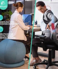 Es hora de desechar esas torpes y aburridas sillas de oficina comunes que te hacen la espalda dolorida y dolorosa después de estar sentado durante largos períodos, conoce este asiento de aire flexible activo recomendado por muchos expertos en fitness y fisioterapeutas para aliviar la fatiga y promover una postura adecuada. Mejora la concentración mientras permaneces activo. Mantén la mente concentrada, el cuerpo libre para movilizarse, en comparación con las sillas tradicionales, la diferencia revolucionaria con una silla de yoga es que puedes sentarte cómodamente para concentrarte en la tarea en curso mientras tus músculos centrales y de piernas siguen completamente comprometidos, lo que a su vez conduce a niveles de energía más altos y una mayor productividad. Comodidad y Seguridad en primer lugar. Las sillas de bola de primera generación son simplemente la simple combinación de una bola de yoga y una base de anillo, lo que las convierte en un imán para el polvo y la suciedad, puede pegarse o incluso ser potencialmente dañino para tu piel después de un período de uso. Equipado con una bola de yoga antiexplosión que soporta hasta 600 libras de peso y una funda deslizante acogedora lavable a máquina, ProBalance es inusualmente cómodo, duradero y fácil de cuidar. Ajuste para todas partes. ¿Buscas una silla de escritorio, una bola de ejercicio para rutinas de fitness diarias o simplemente buscas un bonito otomano para la sala de estar para quitar peso de tus pies después de un largo día? Esta silla de yoga puede servir en estas situaciones perfectamente bien, ¿por qué comprar tres cuando puedes tenerlo todo en uno? Garantía de satisfacción del 100%: Confiamos plenamente en nuestros productos. Si tienes dificultades durante el uso o simplemente no estás 100% satisfecho con él, habla con nuestro personal de servicio al cliente en línea las 24 horas, haremos lo que sea necesario para solucionarlo, sin problemas, sin estrés.