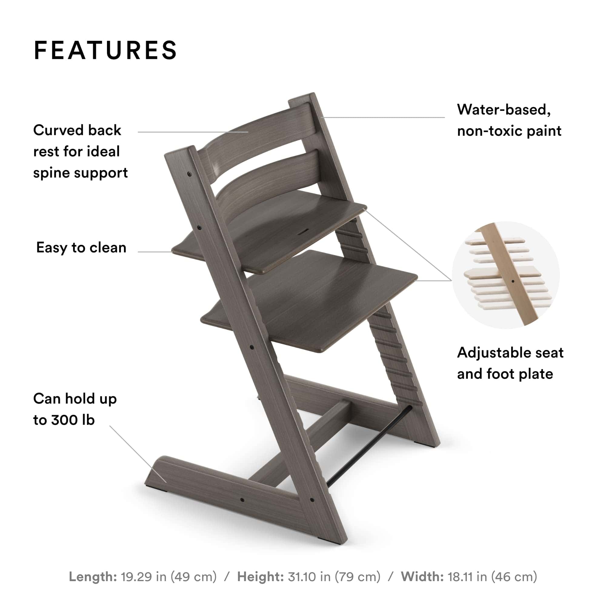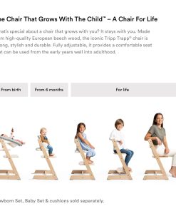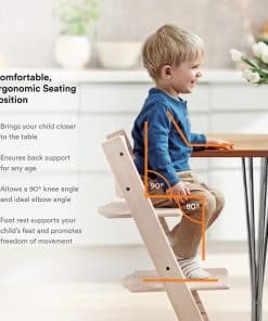 2. ATemporal y ajustable – Con un asiento y reposapiés ajustables, Tripp Trapp permite libertad de movimiento. Además, está disponible en una amplia gama de colores y dos acabados de madera, garantizado para verse hermoso en cualquier entorno.