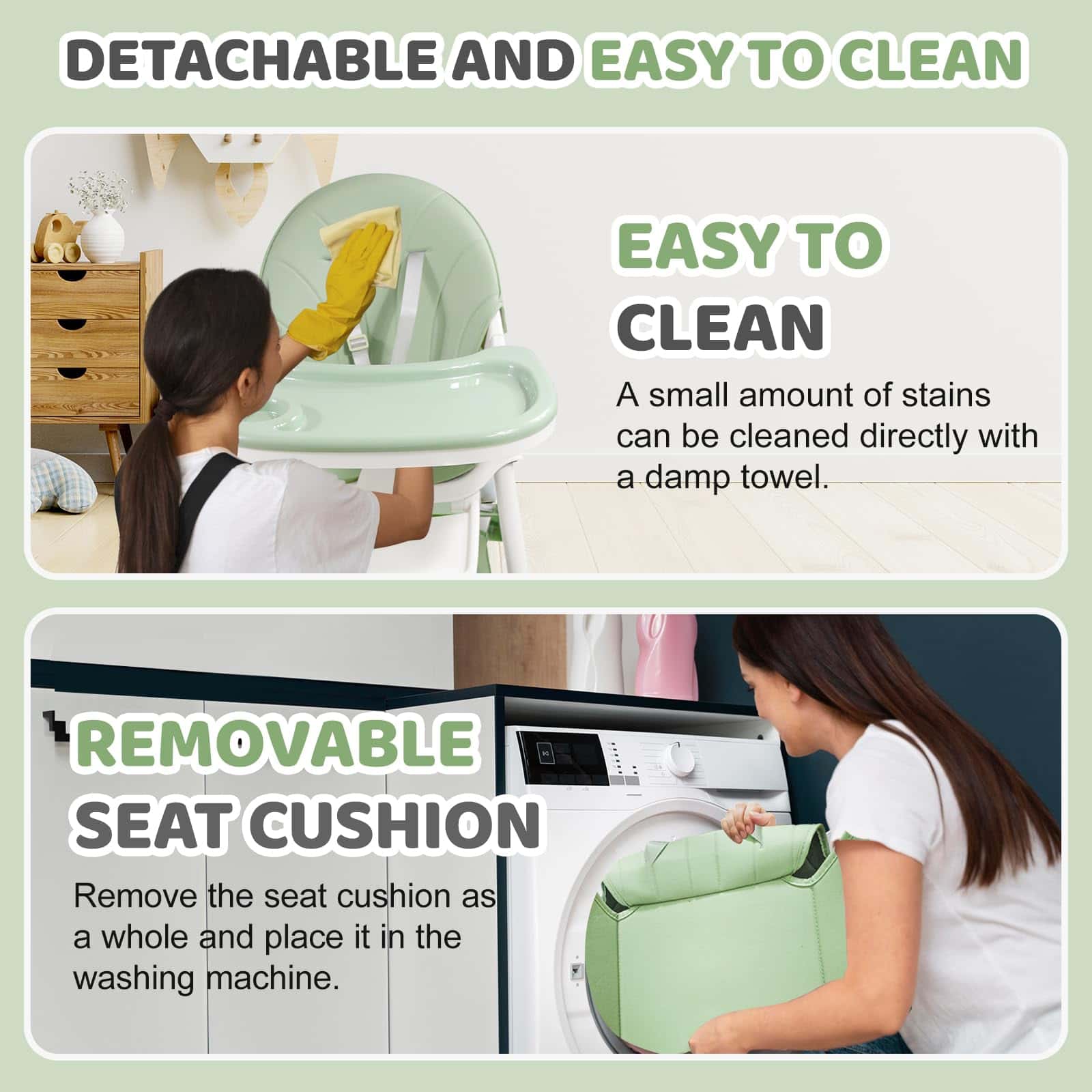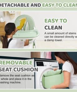 4. Los asientos de la Silla Alta para Niños son fáciles de limpiar, los platos son desmontables y también se pueden colocar en el lavavajillas para limpiar.