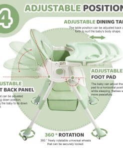 Sillas Altas para Bebés y Niños con Ruedas -Verde 6 en 1
