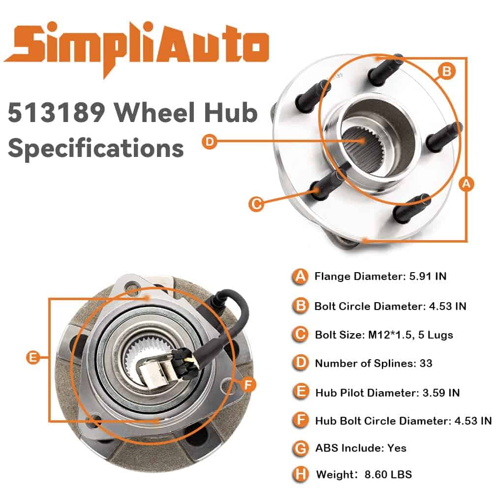 5. El paquete incluye: 2Pcs de ensamble de cojinete de cubo de rueda delantero – lado del conductor y del pasajero-513189.