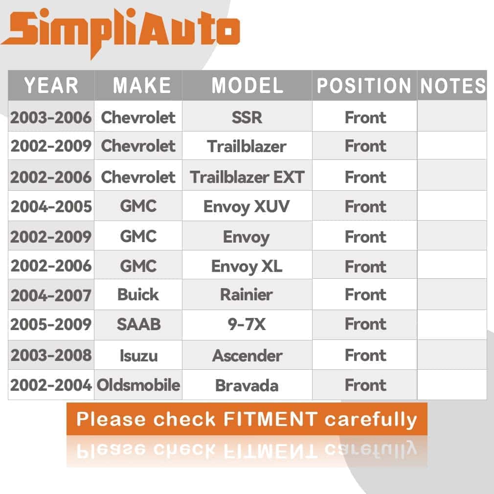SimpliAuto 2PCS Front Wheel Hub Bearing es una fiable y de alta calidad ensamblaje de rodamiento de la rueda delantera compatible con varios modelos de vehículos, incluyendo GMC Envoy, Chevy SSR, Trailblazer, Isuzu Ascender, Buick Rainier y SAAB 9-7X. Este ensamblaje de rodamiento de rueda delantera 513188 está diseñado para adaptarse perfectamente a estos modelos de vehículos específicos y garantiza un rendimiento superior al minimizar el ruido y la vibración. Además, los pernos de rueda delantera de la rueda tienen un recubrimiento protector que resiste la corrosión y el óxido, lo que aumenta la durabilidad y la longevidad del producto. Este conjunto de 2 piezas de rodamiento de rueda delantera y ensamblaje para cubo está diseñado para el lado del conductor y del pasajero, lo que lo convierte en una opción conveniente y completa para la reparación y mantenimiento de su vehículo. Antes de realizar una compra, asegúrese de comprobar la compatibilidad de su automóvil con este ensamblaje de rodamiento de rueda delantera y siga las instrucciones detalladas en la sección de pestañas de compatibilidad para confirmar que el producto se ajusta a su vehículo con precisión.