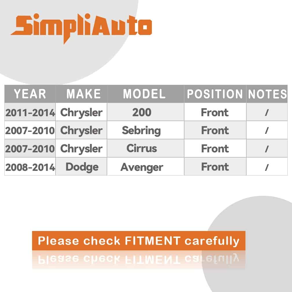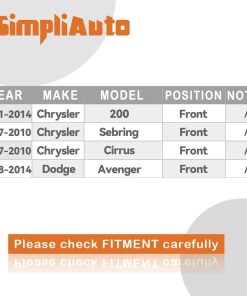 El ensamblaje del buje del cojinete de la rueda delantera SimpliAuto 513263 es compatible con varios modelos de Chrysler y Dodge, incluidos el Sebring, Cirrus, 200 y Avenger. Este ensamblaje de cojinete de rueda delantera está diseñado para garantizar un ajuste preciso y una fácil instalación en su vehículo. Fabricado con estrictos controles de calidad, los rodamientos de rueda SimpliAuto minimizan el ruido y las vibraciones para una conducción suave y confortable. Asegúrese de verificar la compatibilidad con su modelo y año de auto antes de realizar la compra para garantizar una instalación sin problemas. ¡Actualice su vehículo con la calidad premium del ensamblaje del cojinete de la rueda delantera SimpliAuto 513263!