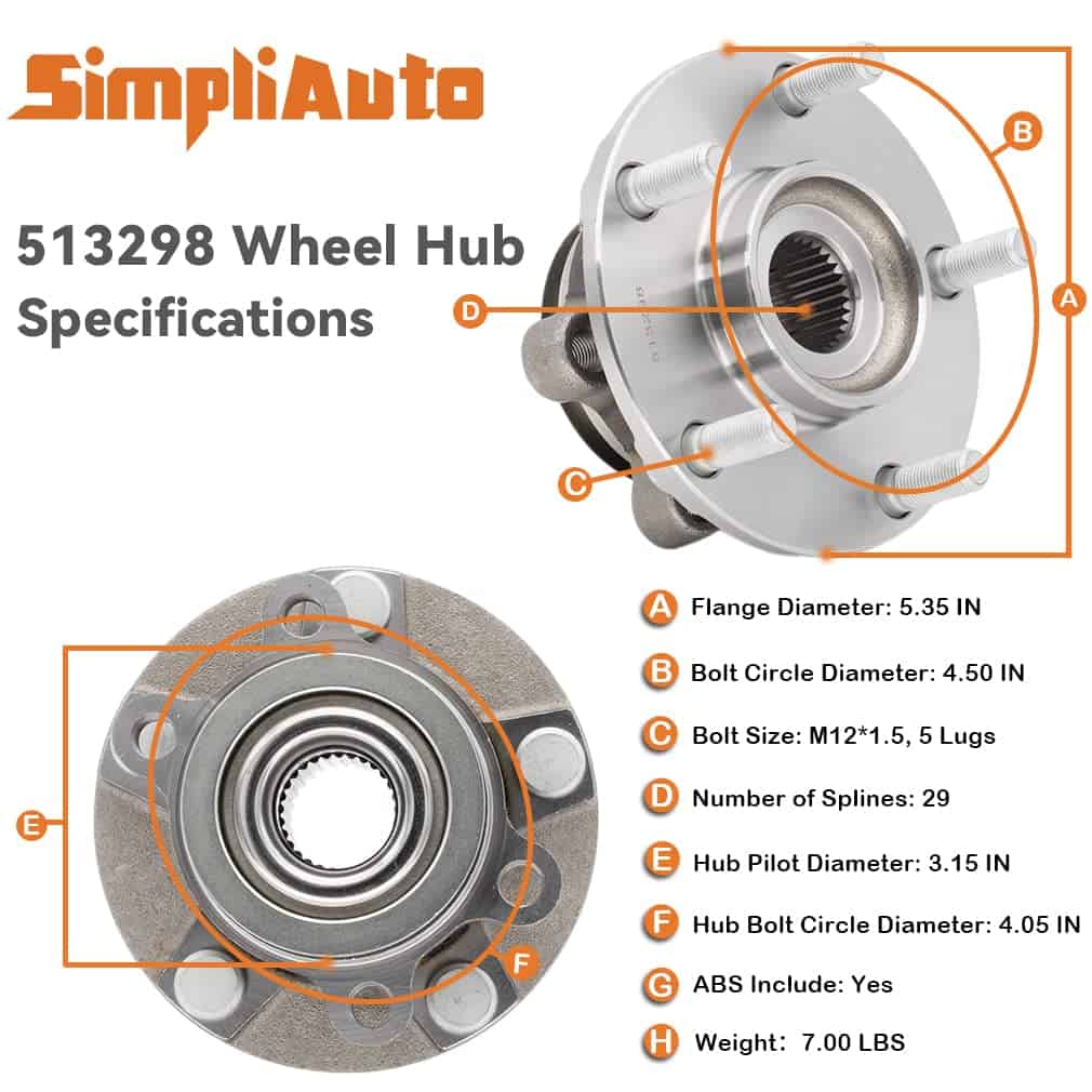 SimpliAuto 513298-x2 Ensamble de Cojinete de Cubo de Rueda