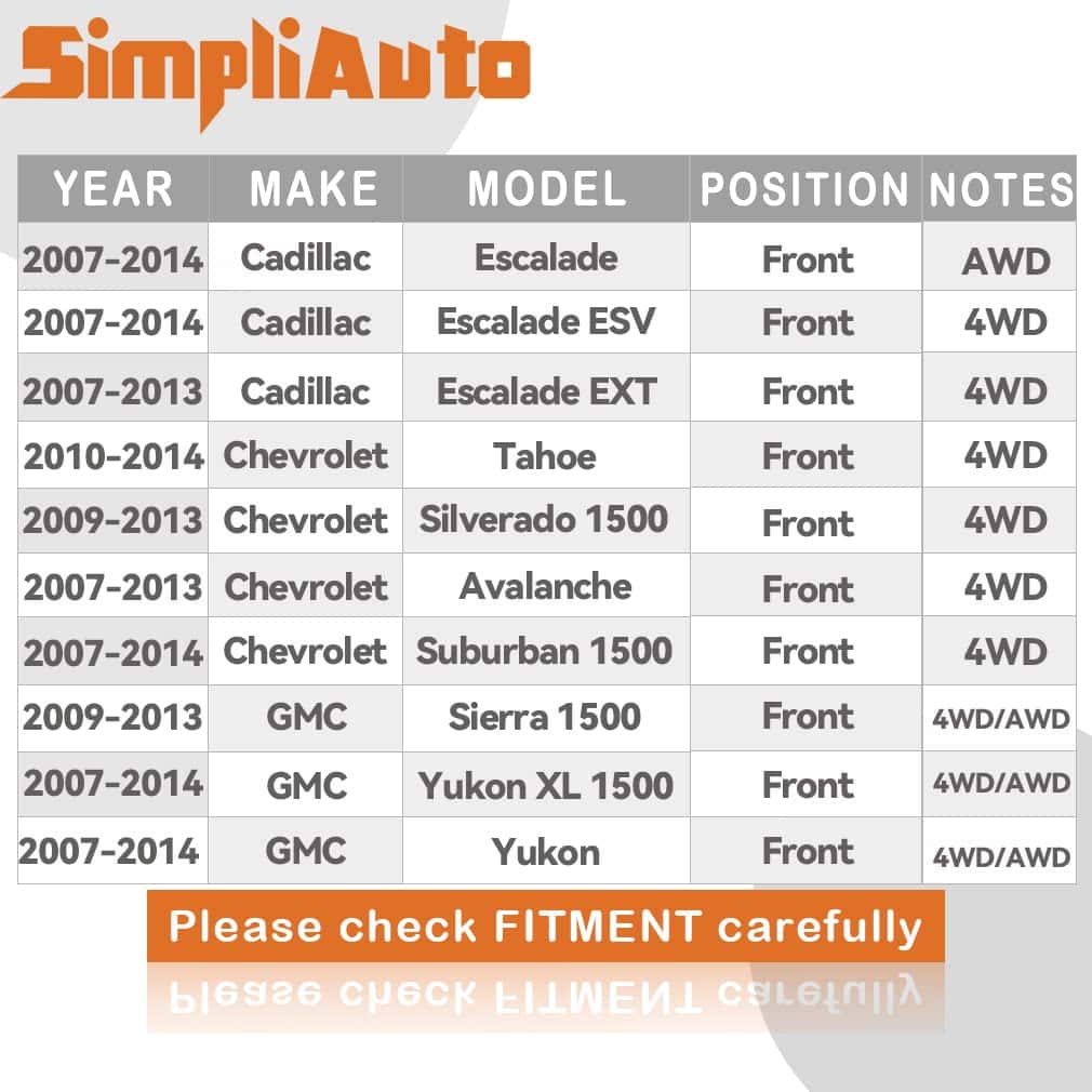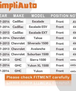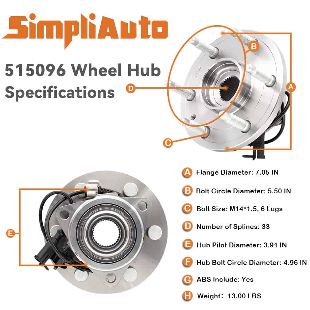1. Compatibilidad: Ensamblaje de rodamientos de rueda 515096 compatible con 2007-14 Cadillac Escalade/ESV/EXT, 2007-13 Chevy Avalanche, 2009-13 Silverado 1500, 2007-14 Suburban 1500, 2010-14 Tahoe, 2009-13 GMC Sierra 1500, 2007-14 Yukon/Yukon XL 1500.