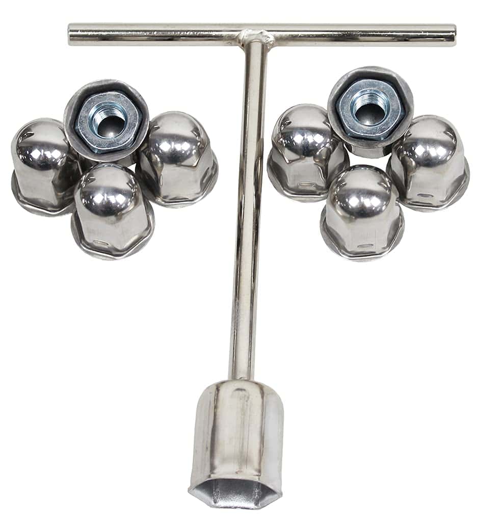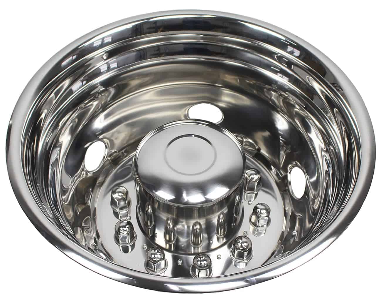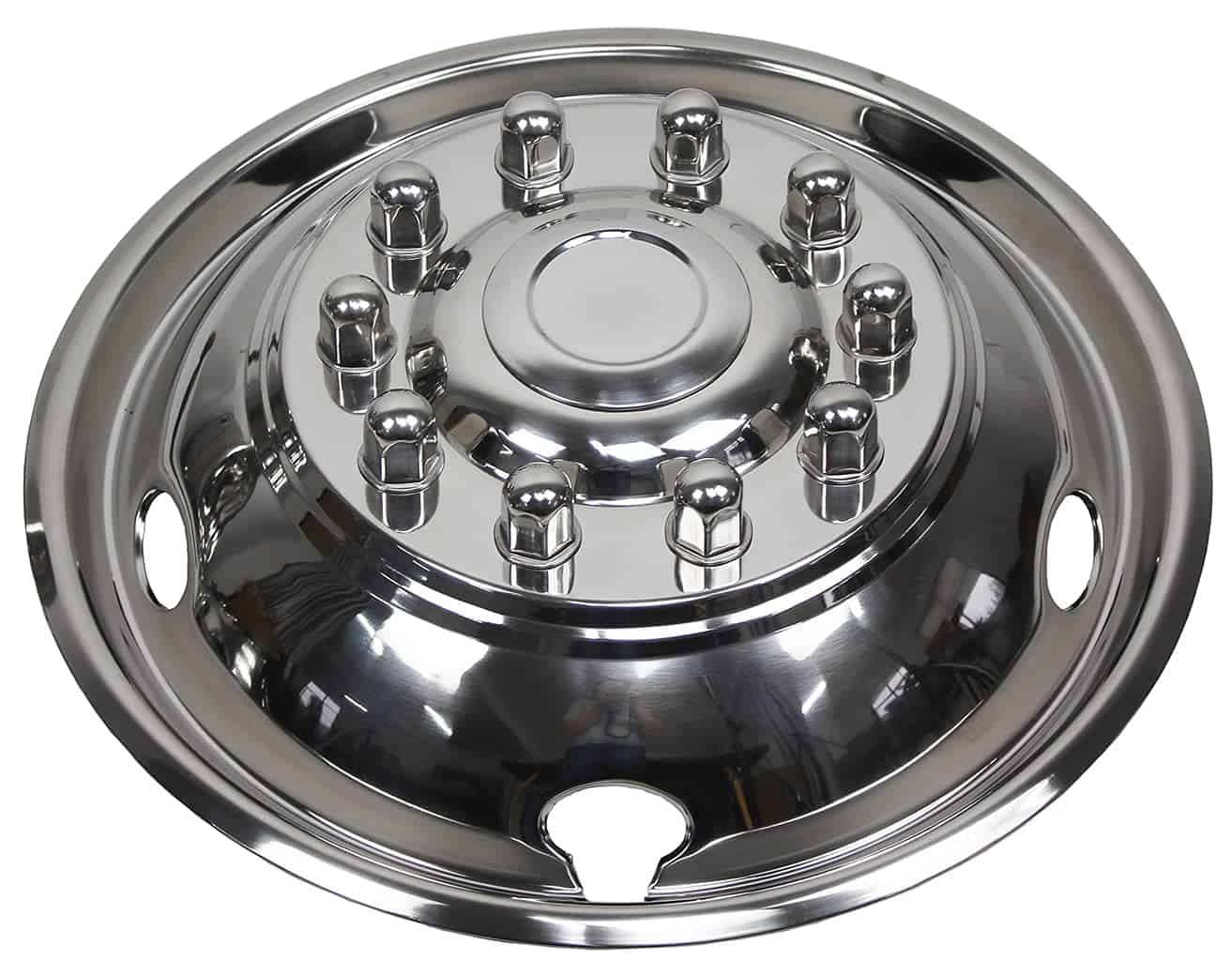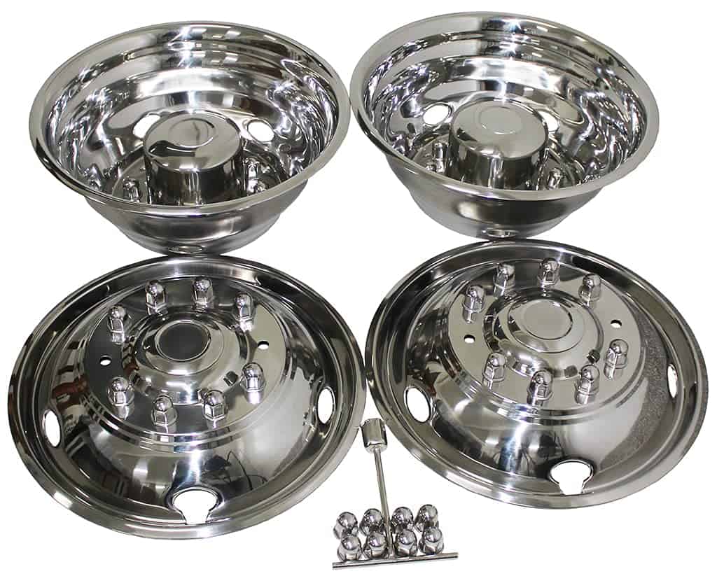 Simuladores de rueda de acero inoxidable XIUHUA de 19.5 pulgadas para camión Ford F450 F550 2005-2020. Este juego de simuladores de rueda está construido con acero inoxidable 304 de alta calidad, con un atractivo acabado de espejo que lo hace duradero en el tiempo. El estilo de montaje sobre los pernos permite una fácil instalación. El set incluye 2 cubiertas de rueda delantera, 2 cubiertas de rueda trasera, 8 cubiertas de tuercas de rueda con tuercas de freno y 1 herramienta de instalación. Con un tamaño de 19.5 pulgadas, 10 pernos y 5 agujeros para la mano, este conjunto de simuladores de rueda se ajusta perfectamente al camión Ford F450 F550 fabricado entre 2005 y 2020 (No apto para autocaravana RV). Añade un toque de estilo y funcionalidad a tu camión con estos simuladores de rueda de acero inoxidable de XIUHUA.