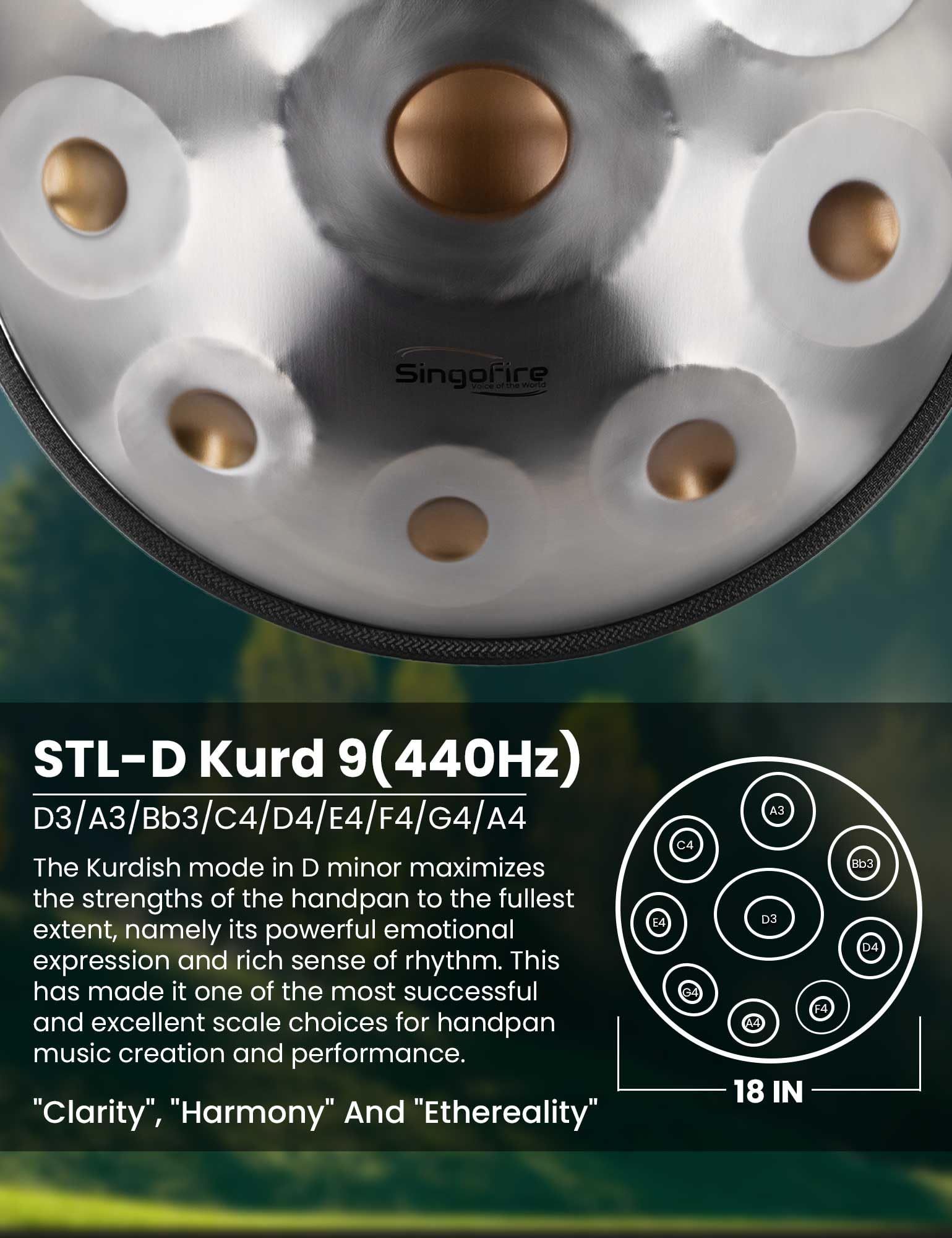 SINGOFIRE 18-Inch Handpan Drum, 9-Notes para Adultos, 440Hz