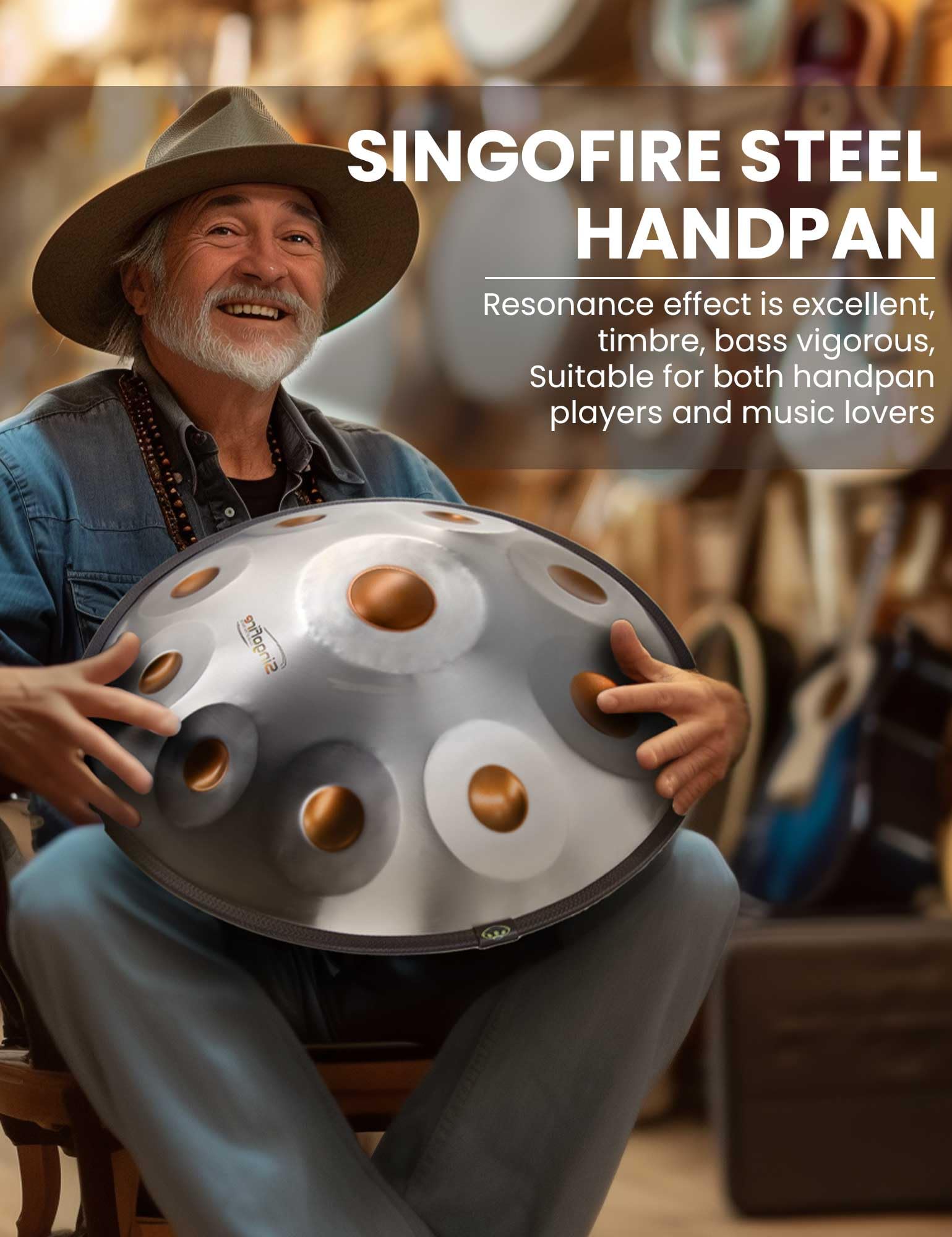 3. WE ARE MORE PROFESSIONAL En SINGOFIRE, utilizamos técnicas de producción internacionales principales guiadas por un experto en handpan profesional de Brasil. El espectro armónico completo es claramente audible, desde tonos graves profundos hasta notas brillantes agudas. Trabajando estrechamente con nuestro consultor experto, hemos refinado nuestro proceso de calentamiento para permitir que la personalidad única y el carácter visual de cada tambor surjan de manera natural.