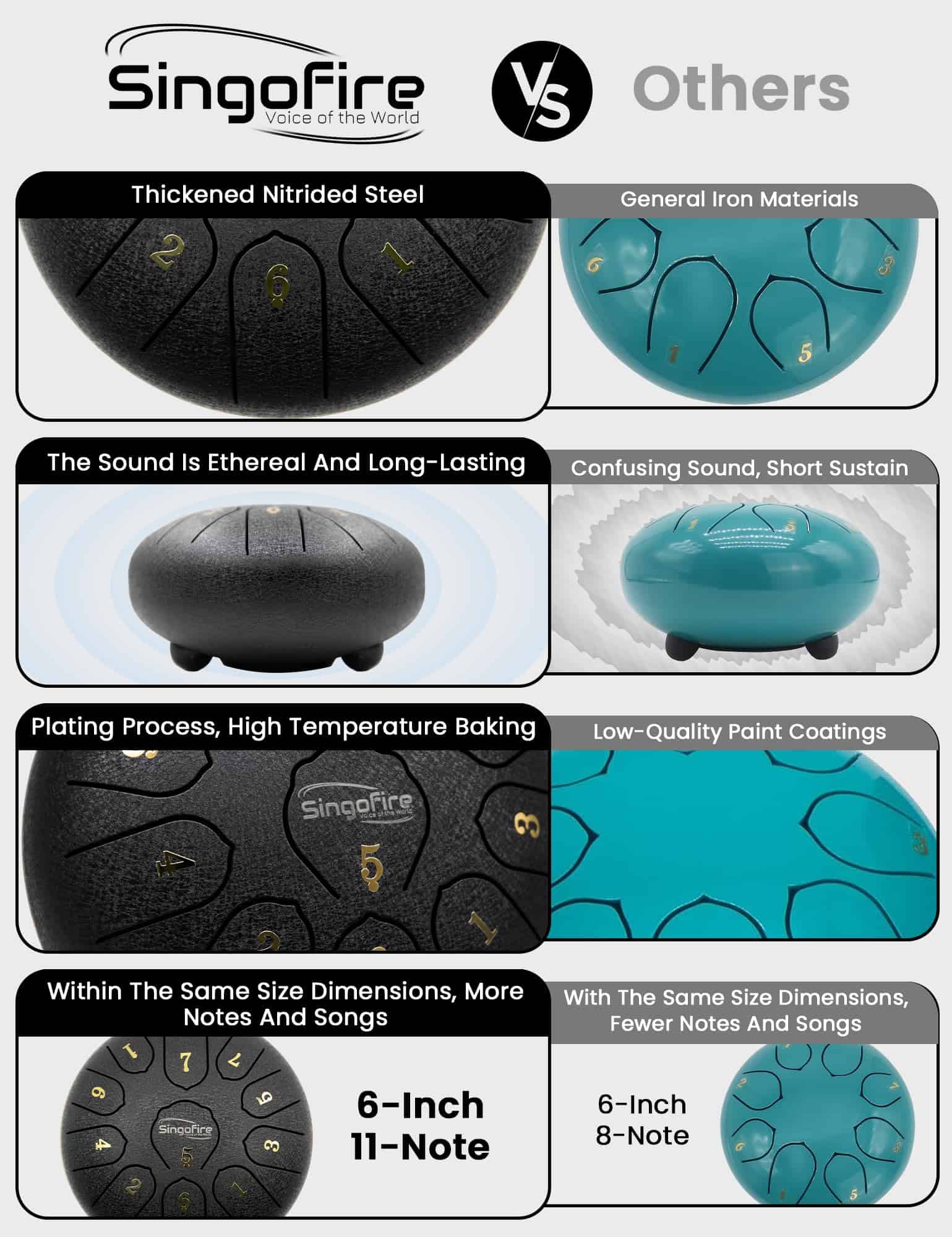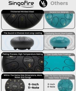 Singofire Tambor de Lengua de Acero, Tambor de Acero de 6
