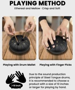 1. Artesanía incomparable: Fabricados con una aleación de titanio premium, nuestros tambores de lengua de acero cuentan con una resistencia, resistencia a la corrosión y tolerancia al calor sin igual que superan al acero al carbono ordinario. Un revestimiento protector resistente a los arañazos fortalece aún más su resistencia. Cada tambor es meticulosamente modulado a mano y cortado con precisión láser, garantizando estabilidad tonal y un sonido nítido y hermoso en la escala estándar de 11 notas C. 2. Resonancia refinada: A través del corte guiado por láser, cada nota en nuestros tambores alcanza una precisión y perfección tonal incomparables. Los pies de silicona a prueba de golpes y un fondo sellado amplifican la resonancia, produciendo tonos más suaves y volúmenes más altos. Con mínimas fluctuaciones, cada nota vibra con una excelente resonancia, creando una experiencia inmersiva que alivia el estrés e inculca una relajación profunda, elevando tu bienestar. 3. Versatilidad sin límites: Nuestros tambores de lengua de acero decoran una amplia gama de entornos, desde la educación musical y el yoga hasta la meditación, la sanación espiritual, la exploración de sueños y el acompañamiento de conciertos. Con su diseño elegante e increíble sonido, cautivan tanto a niños como adultos, infundiendo cualquier reunión con alegría y asombro. Aprovecha la diversión y deja que las melodías encantadoras enriquezcan las experiencias de tu vida. 4. Un regalo de alegría: Presenta el regalo de la música a tu hijo con nuestros tambores de mano, una experiencia encantadora de unión entre padres e hijos. Este instrumento interactivo mantendrá entretenidos a los pequeños durante horas, fomentando su desarrollo auditivo y visual mientras fomenta habilidades invaluables como la creatividad, la confianza, la paciencia y la aptitud social. Su diseño chic lo convierte en el centro perfecto para fiestas temáticas de música y celebraciones de cumpleaños, creando recuerdos queridos. 5. Nuestro compromiso contigo: Con 15 años de experiencia como fabricante profesional de tambores de lengua de acero, nos enorgullecemos enormemente de nuestra artesanía y respaldamos cada producto. Ofrecemos una garantía de satisfacción del 100%, asegurando tu tranquilidad. Si tienes alguna pregunta, nuestro equipo dedicado proporcionará una respuesta satisfactoria en un plazo de 24 horas. Experimenta la diferencia de nuestro compromiso con tu completa satisfacción.